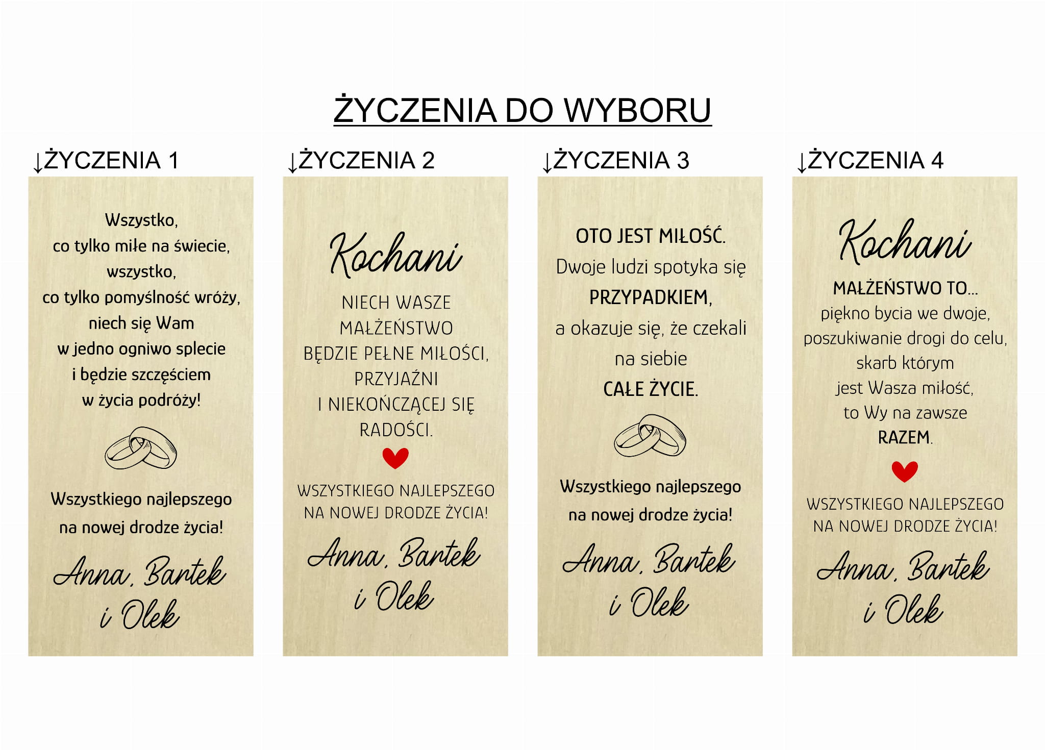 - nadrukowane życzenia