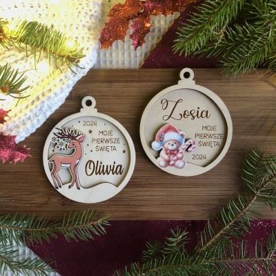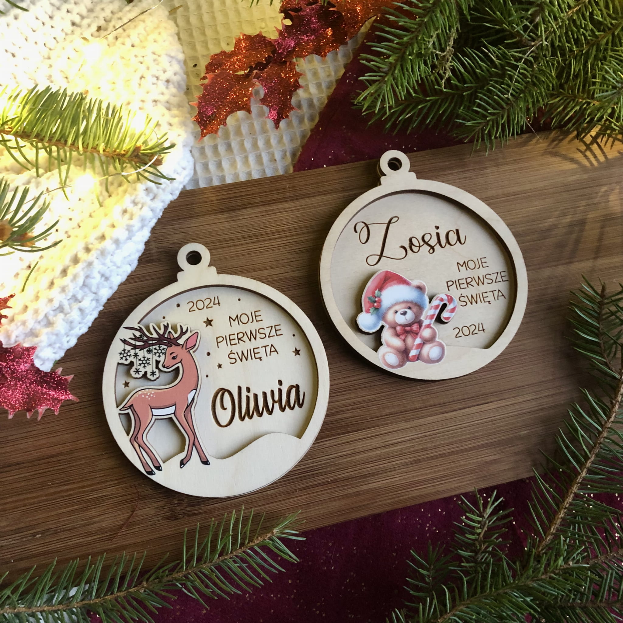 Drewniana bombka 3D z grawerem i kolorowym nadrukiem