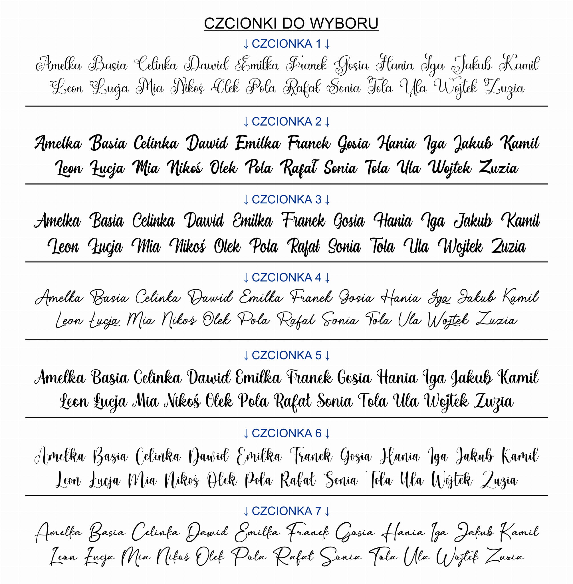 - 7 czcionek - imię