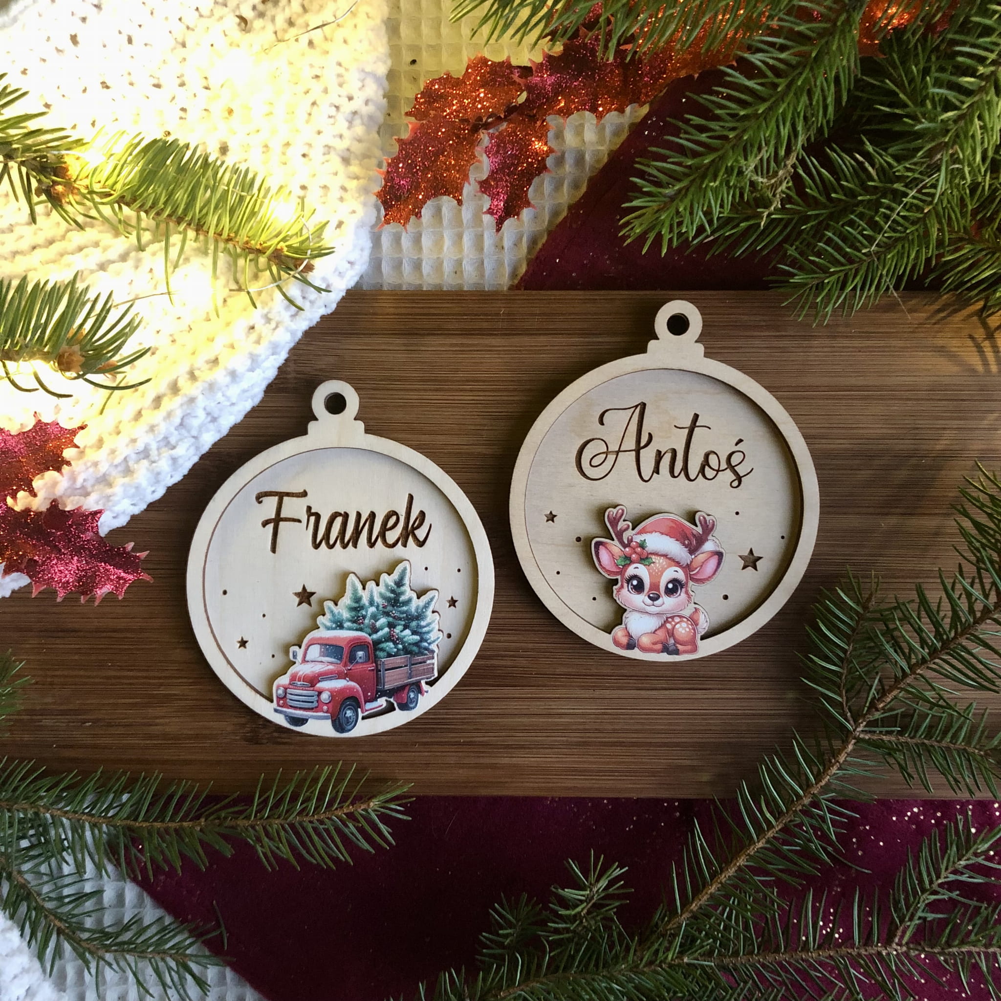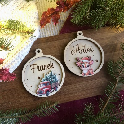 Drewniana bombka 3D z grawerem i kolorowym nadrukiem