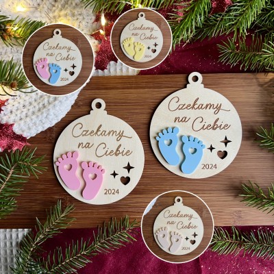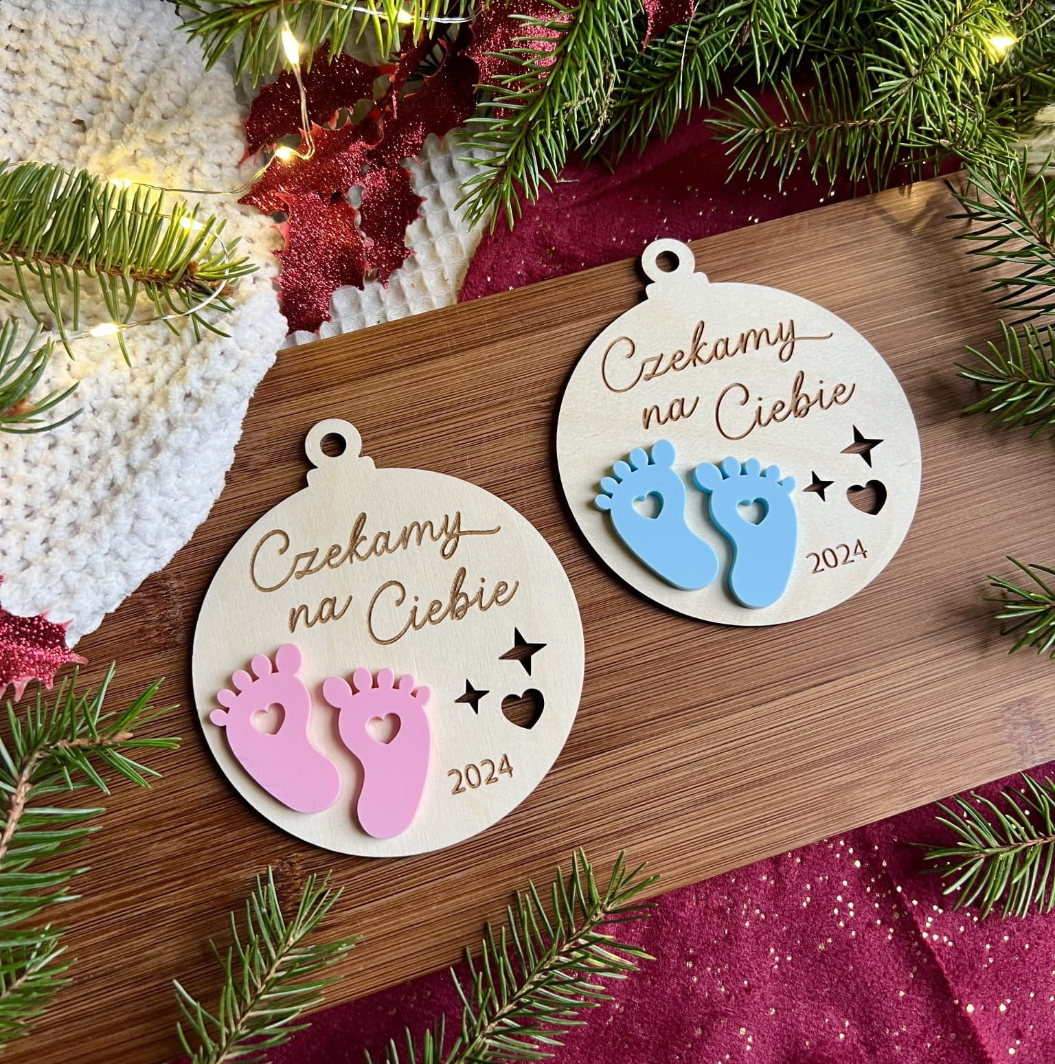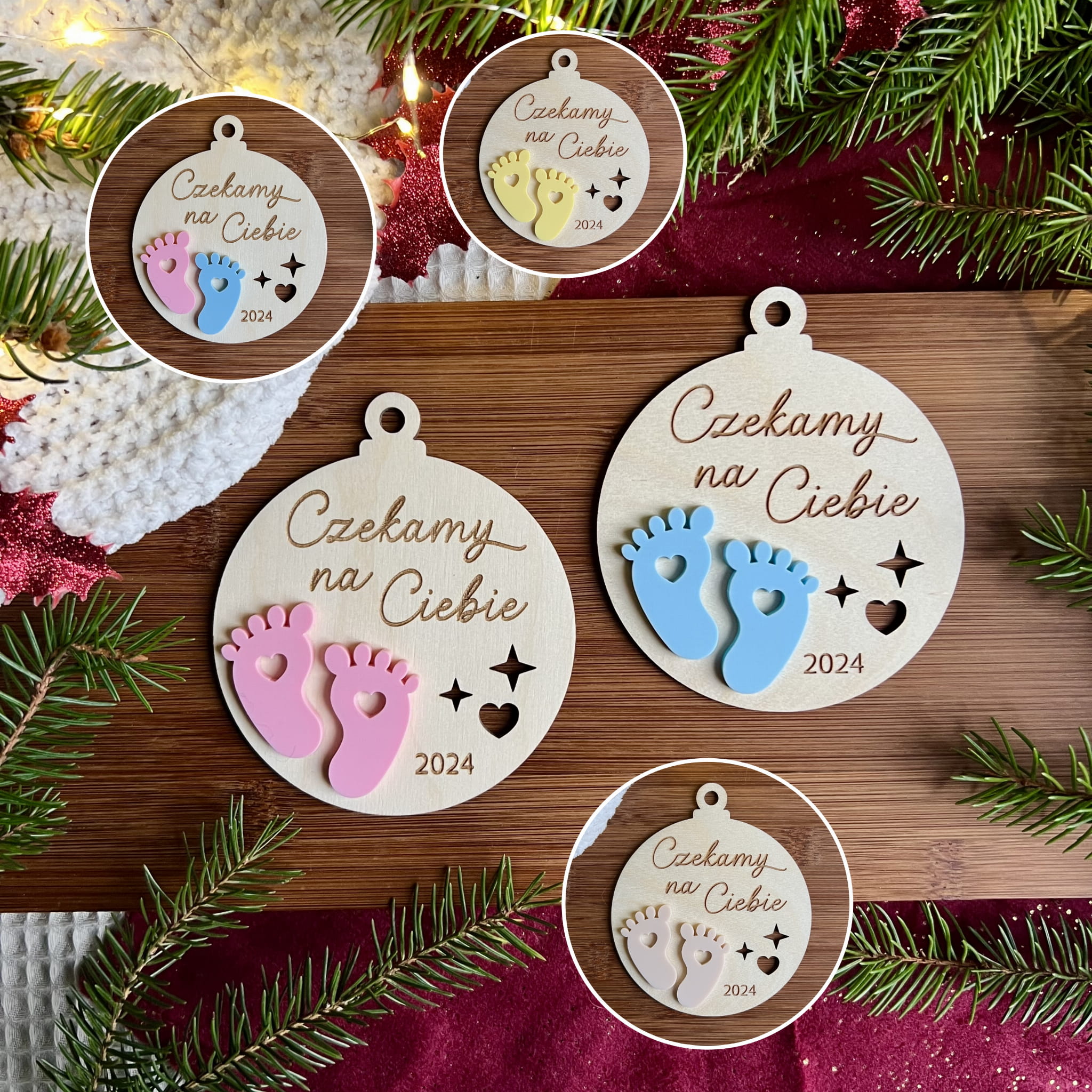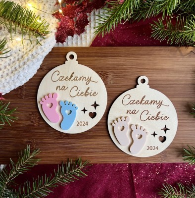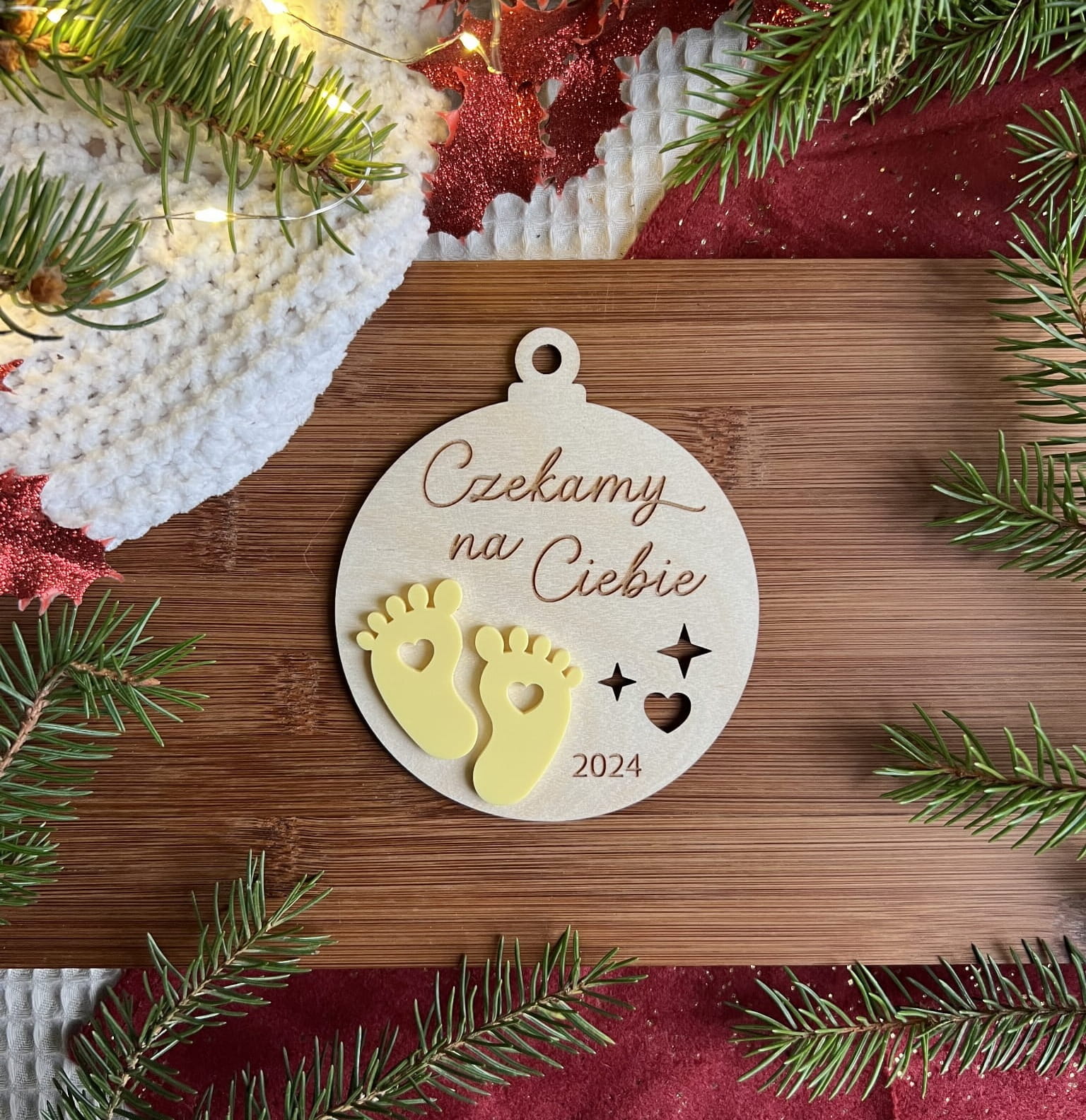 Drewniana bombka 3D z grawerem i kolorowymi stópkami