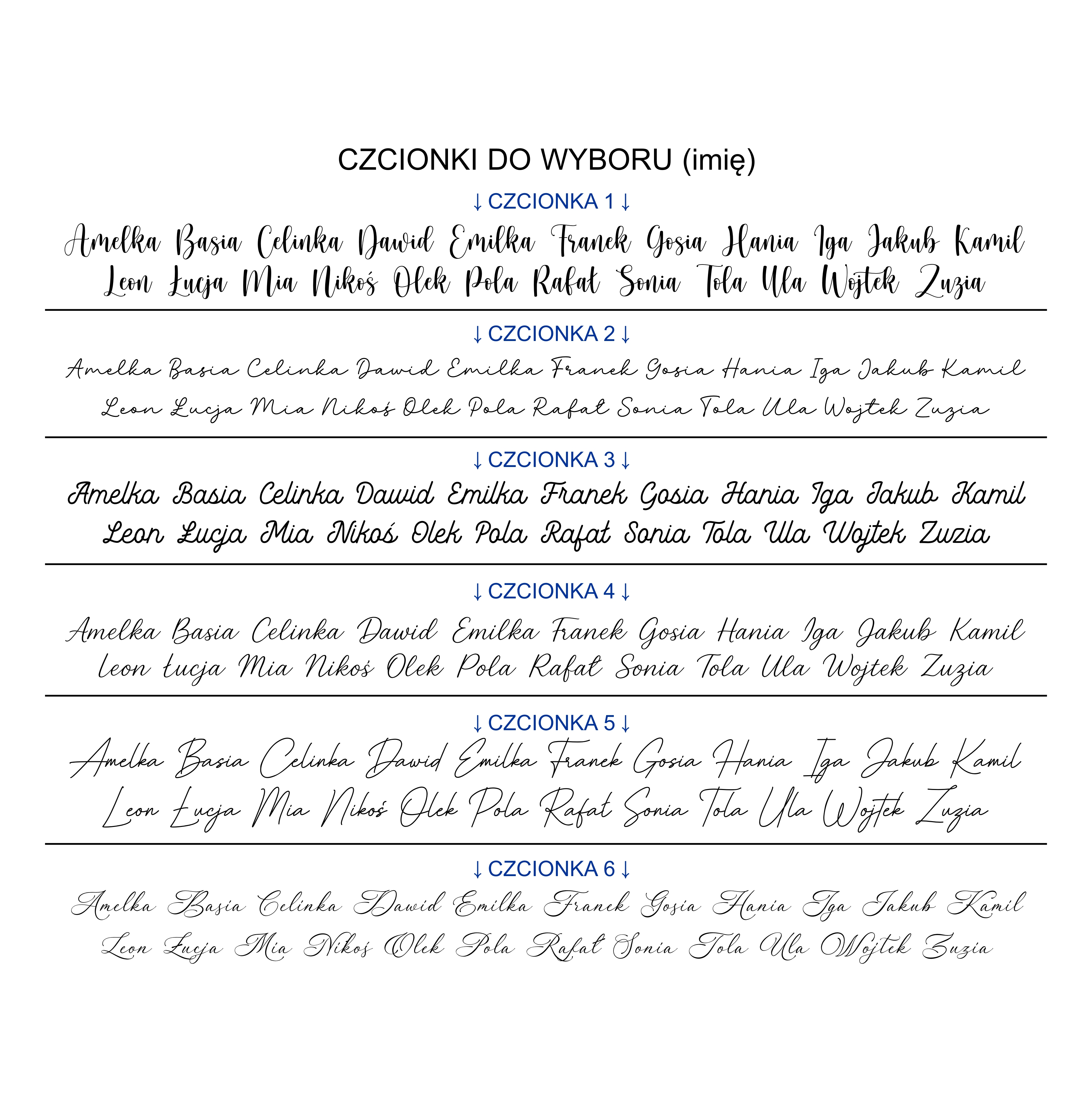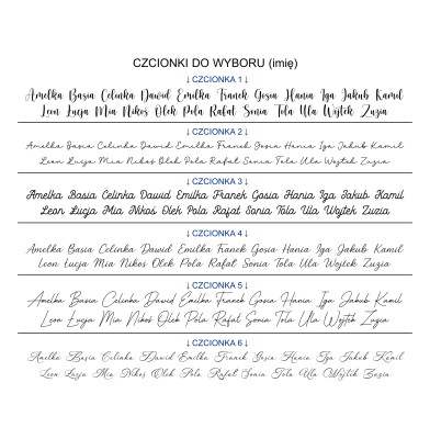 Imię - 6 czcionek do wyboru.