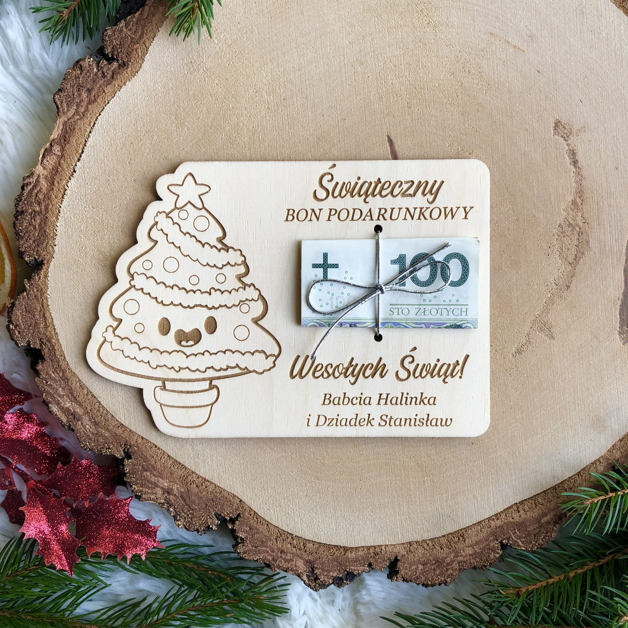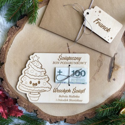 Drewniana świąteczna kartka