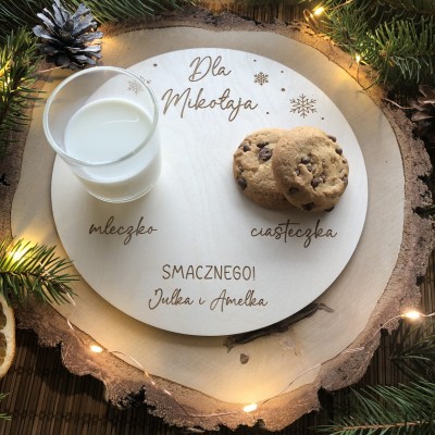 Drewniany talerzyk na mleczko i ciasteczka dla Świętego Mikołaja!