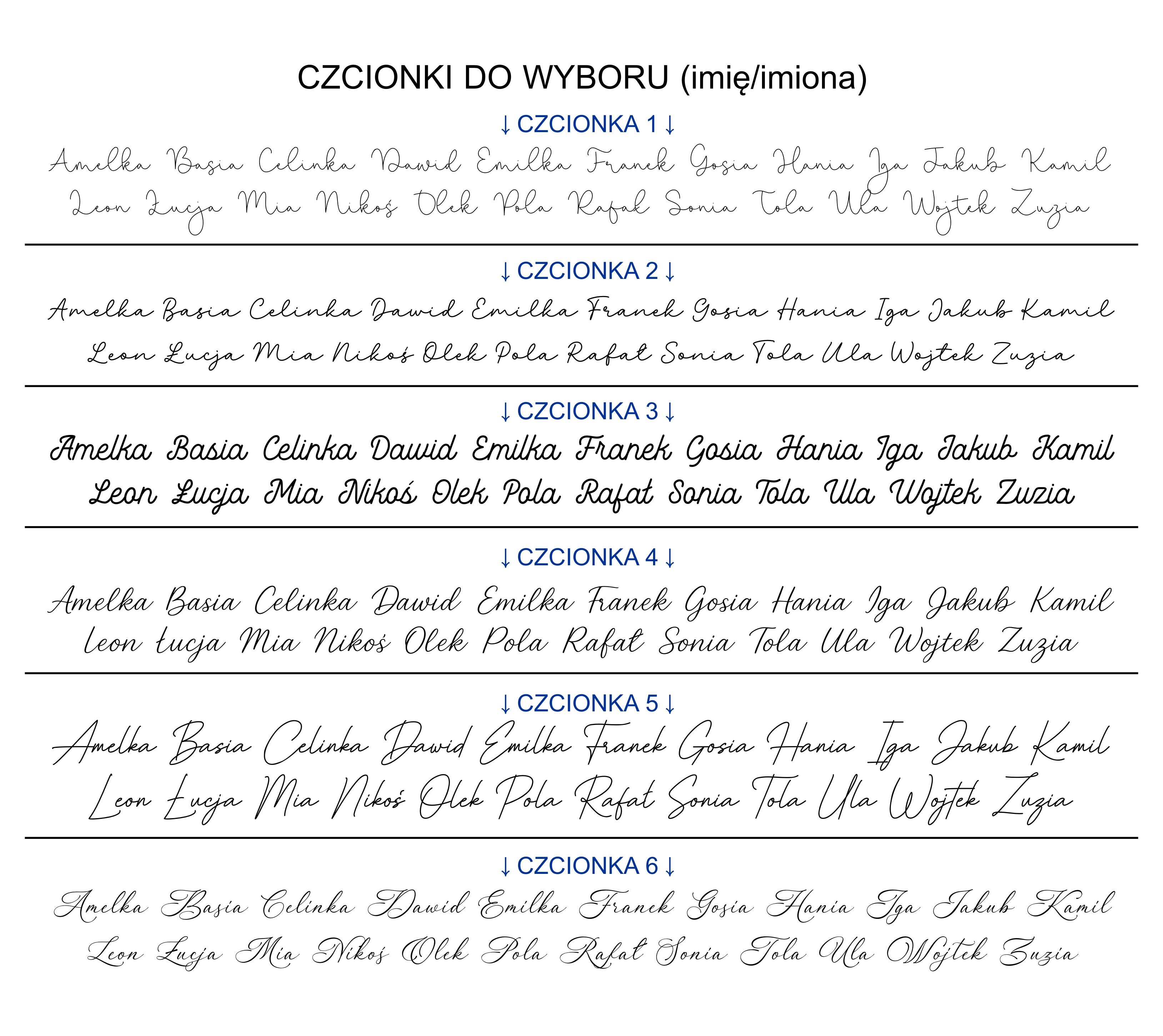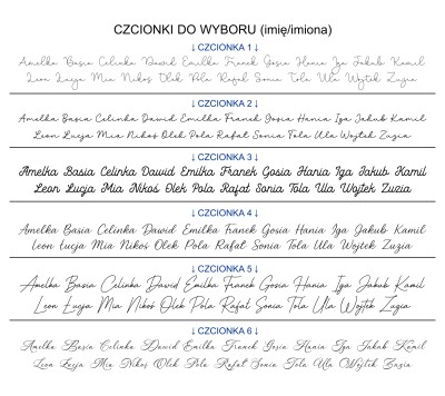 Na tabliczce może być jedno lub kilka imion - do wyboru 6 czcionek.