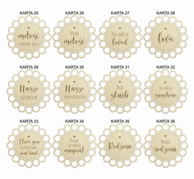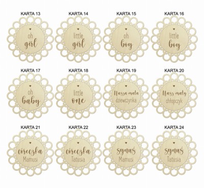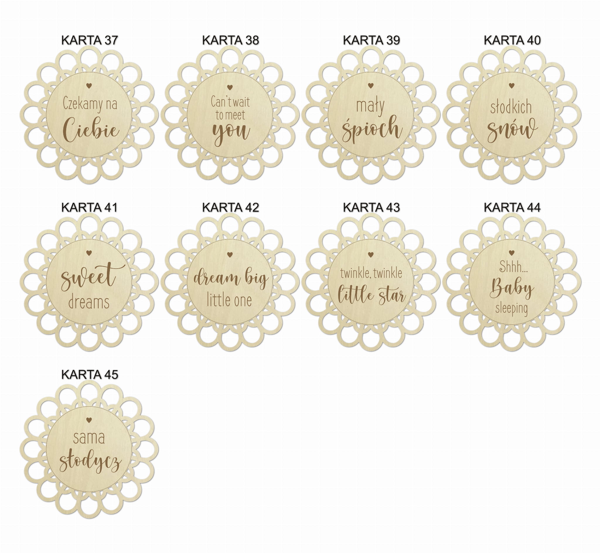 Do wyboru 45 kart przedstawionych na zdjęciach.