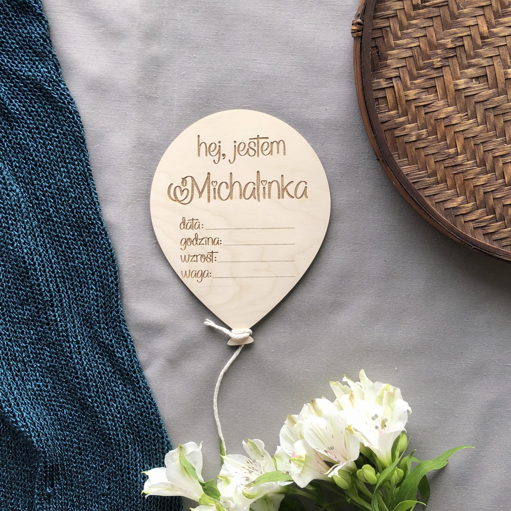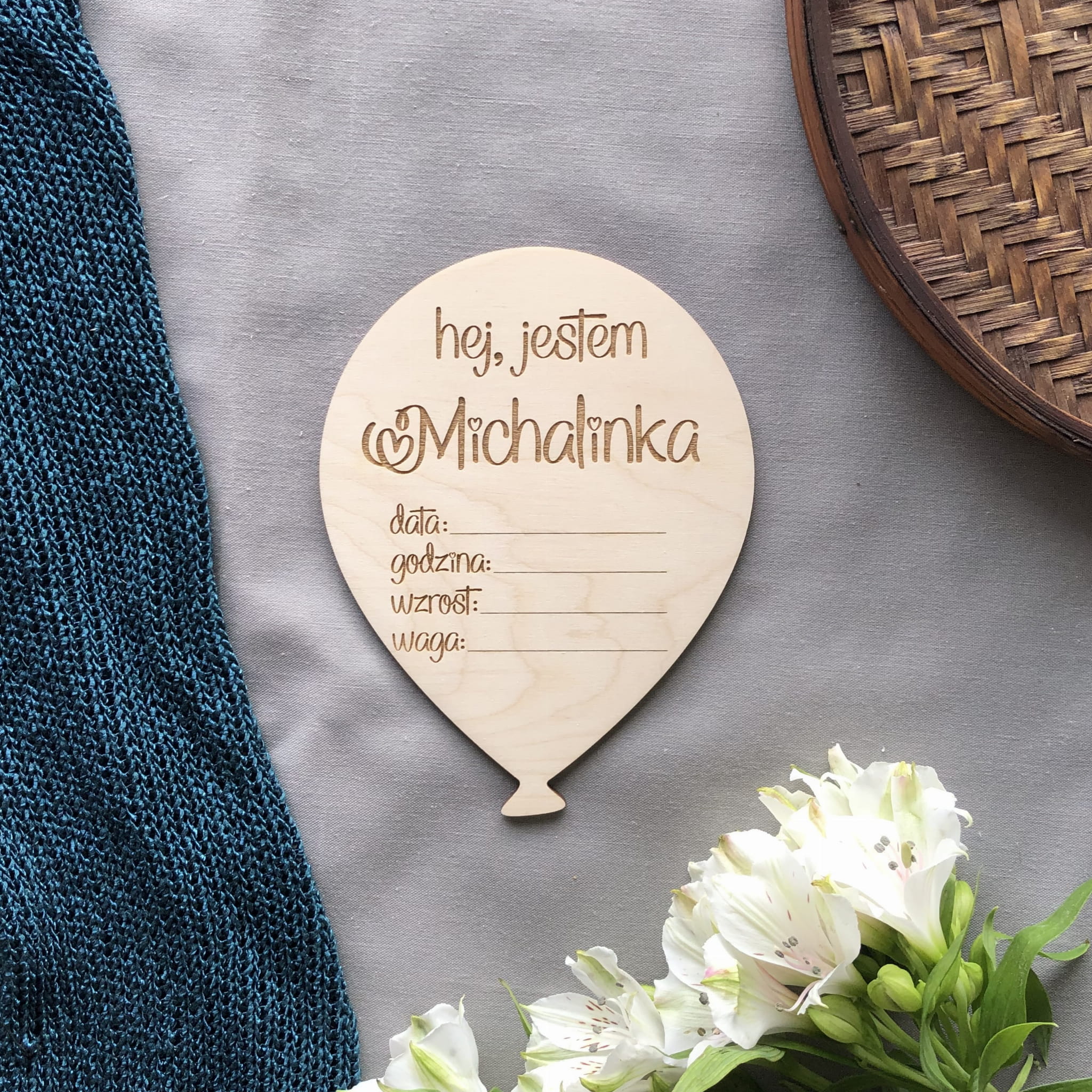 Drewniana karta do zdjęć - metryczka do samodzielnego wypisania.