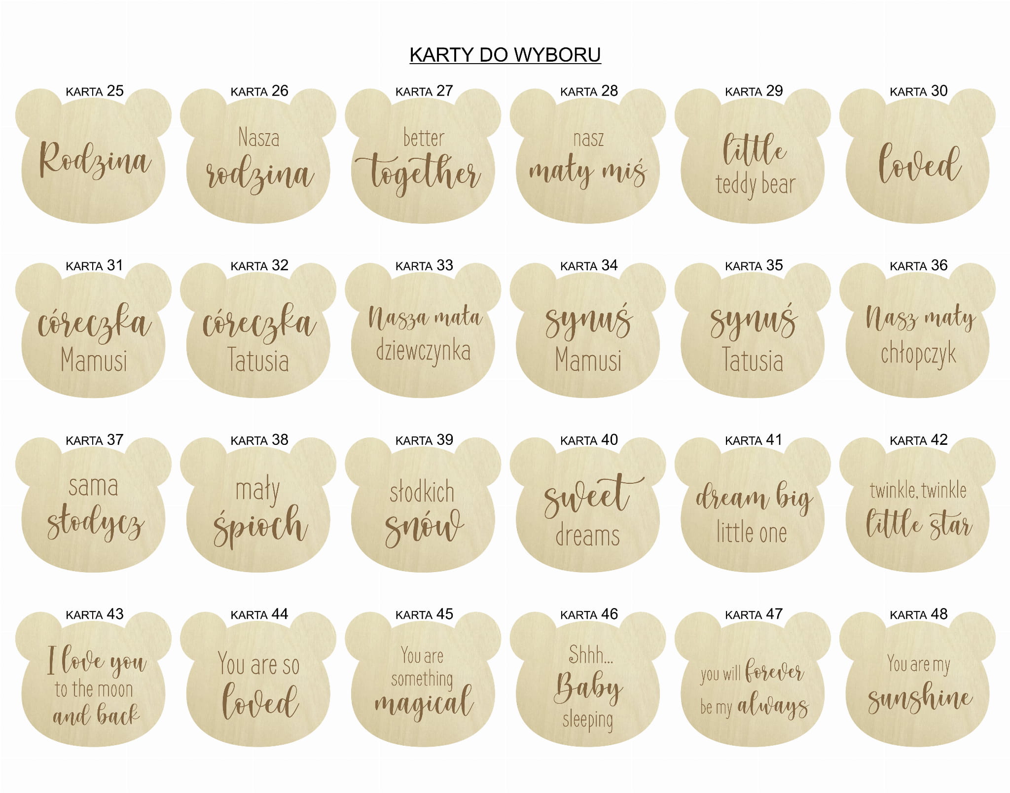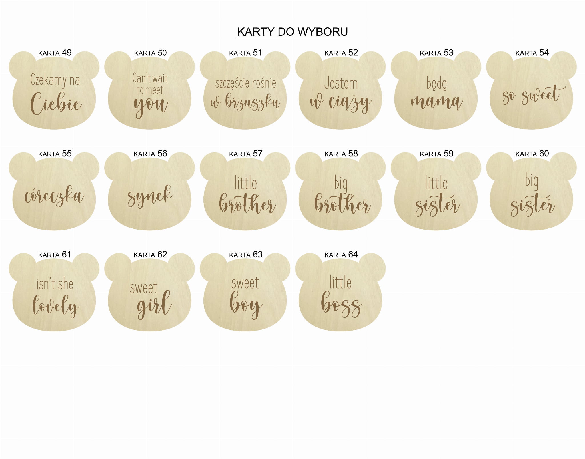 Do wyboru 64 karty przedstawione na zdjęciach.