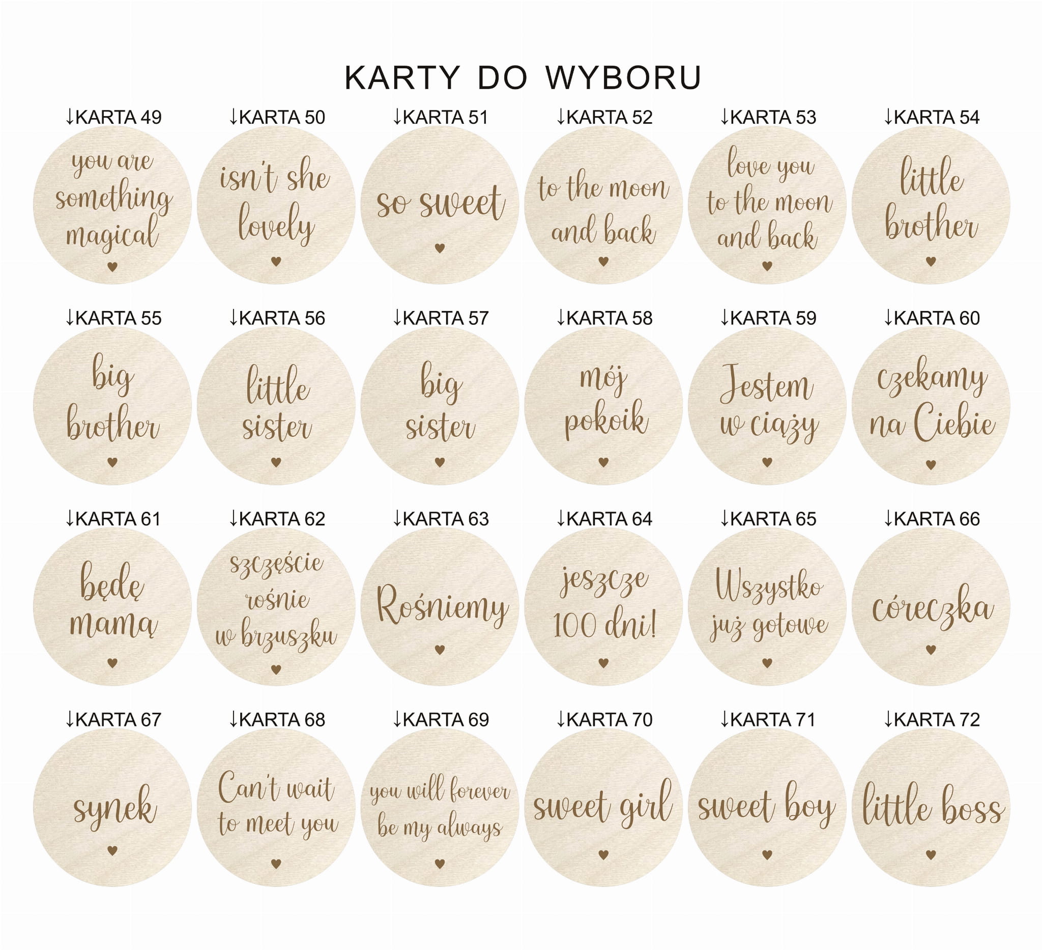 Do wyboru 72 karty przedstawione na zdjęciach 2-4.