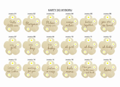 Do wyboru 18 kart przedstawionych na zdjęciach.