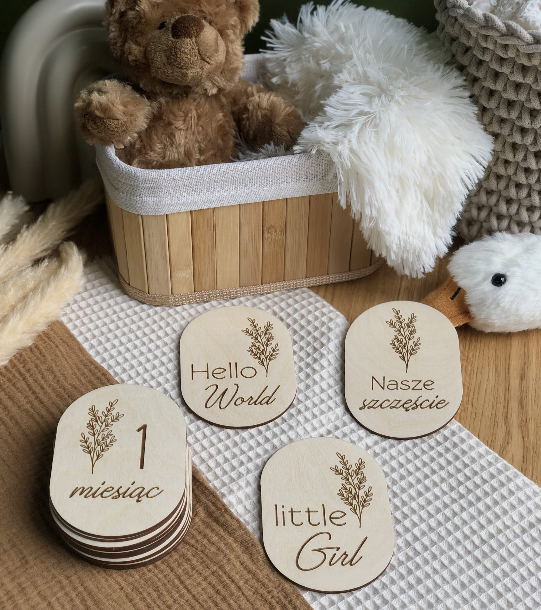 Zrób maluszkowi zdjęcie z kartą - dzięki nim powstanie piękna pamiątka tego jak z miesiąca na miesiąc zmienia się wasze dziecko.