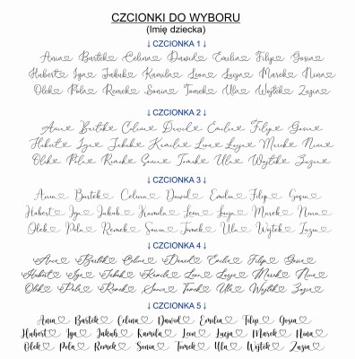 Na dole nadrukowane jest imię dziecka zakończone serduszkiem i nazwisko.