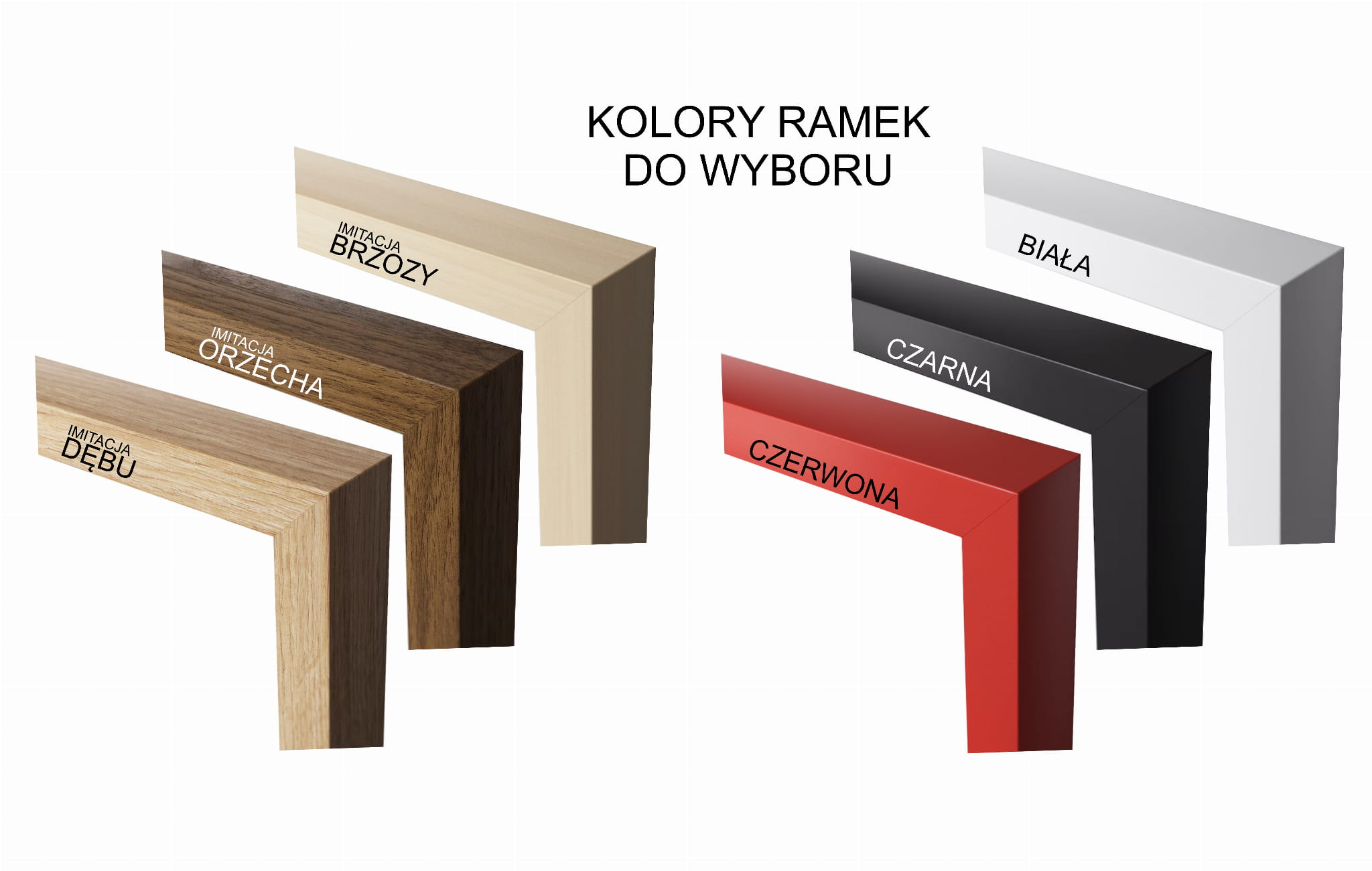 - 6 kolorów ramki (biała, czarna, imitacja brzozy, imitacja orzecha, imitacja dębu, czerwona)