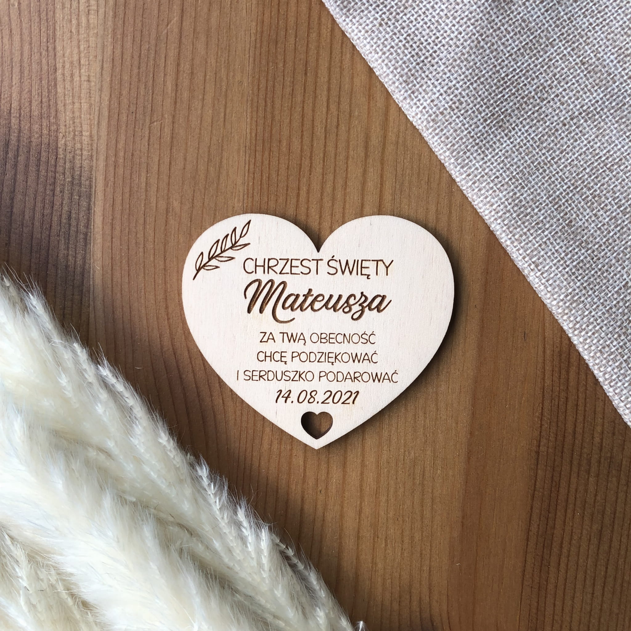Drewniany magnes z grawerem - podziękowanie dla gości