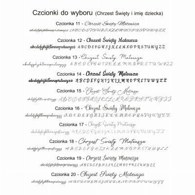- 21 czcionek (Chrzest Święty i imię dziecka)