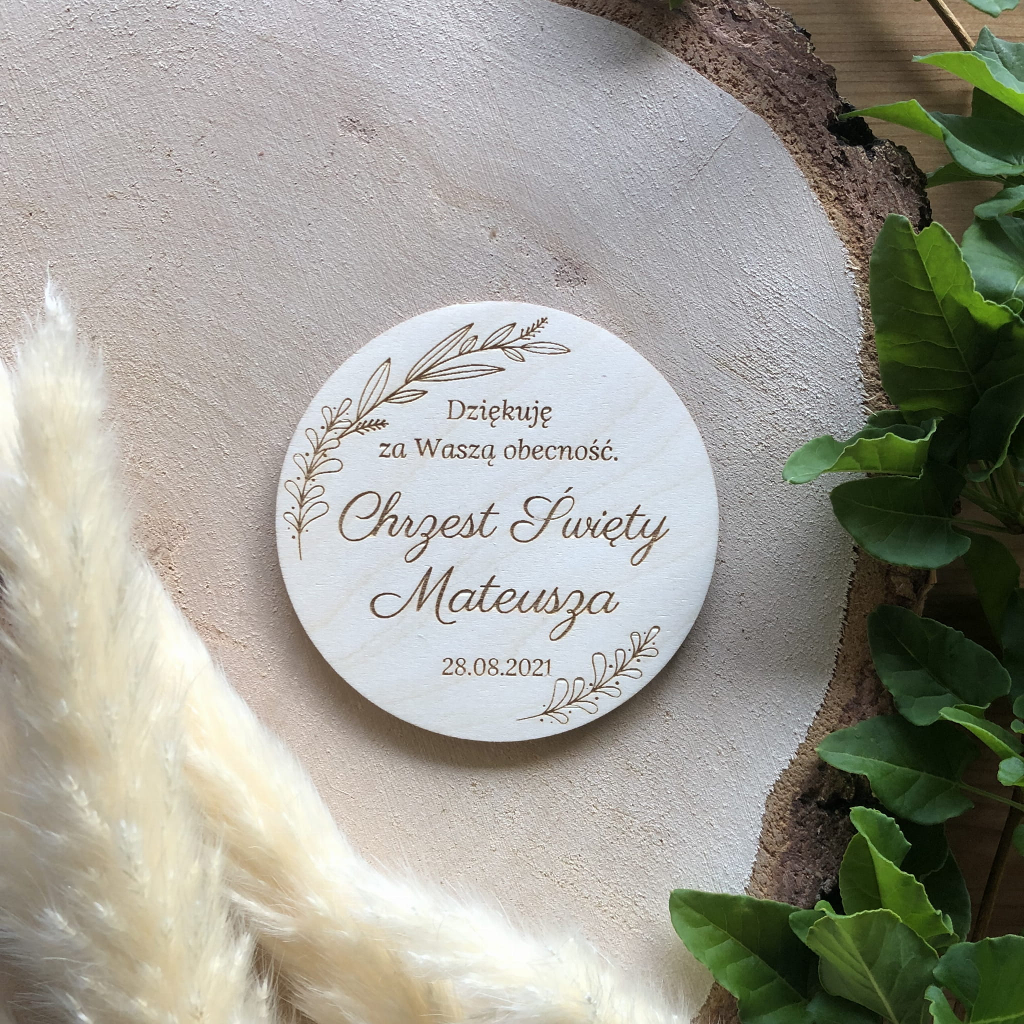 Drewniany magnes z grawerem - podziękowanie dla gości