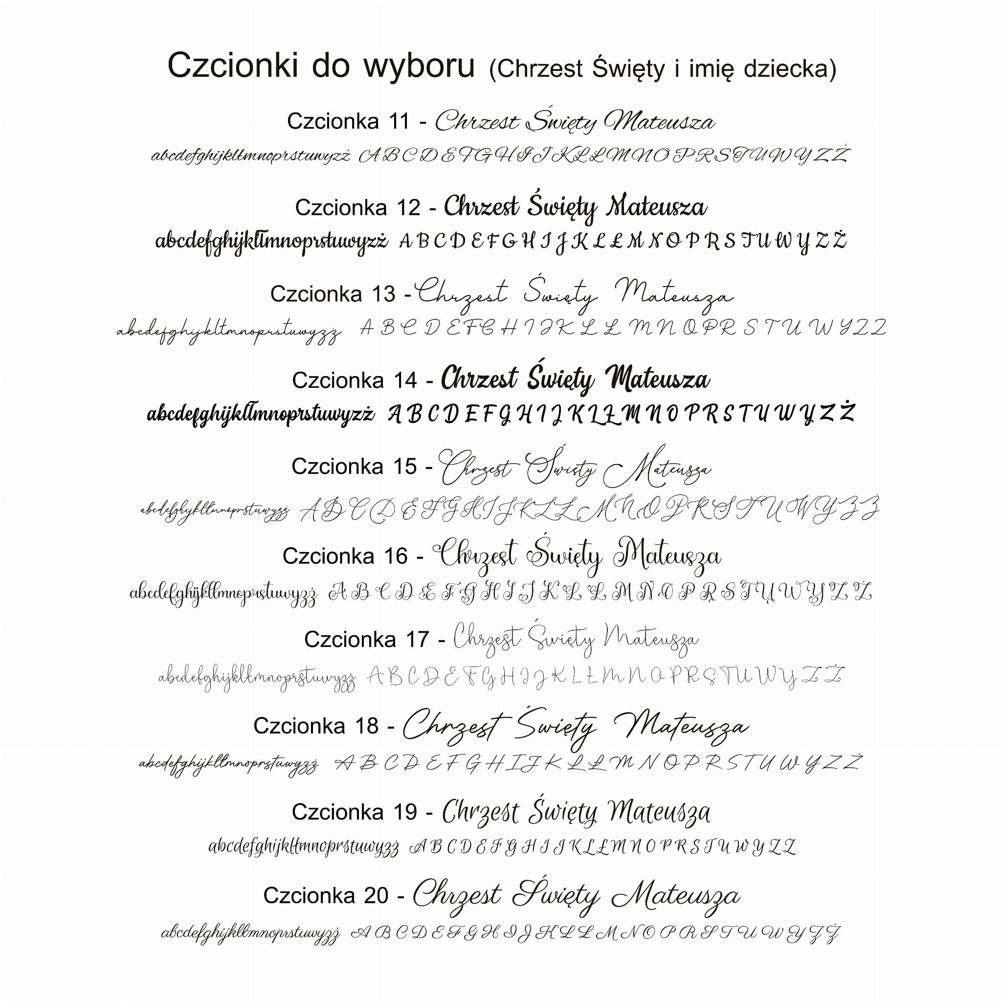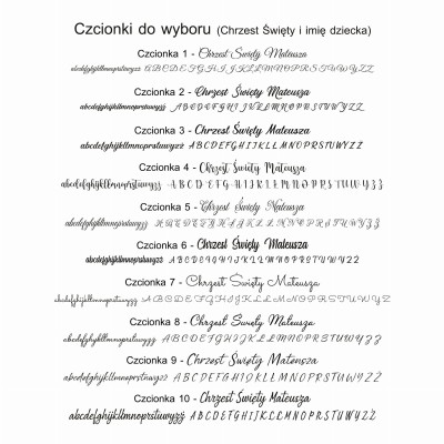 - 21 czcionek (Chrzest Święty i imię dziecka)