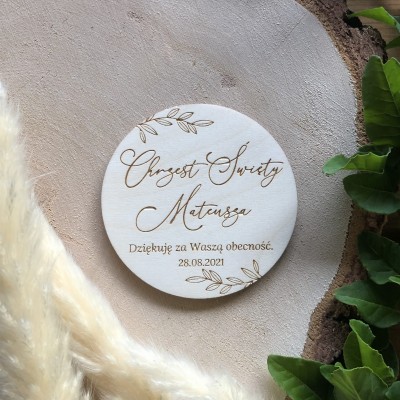Drewniany magnes z grawerem - podziękowanie dla gości