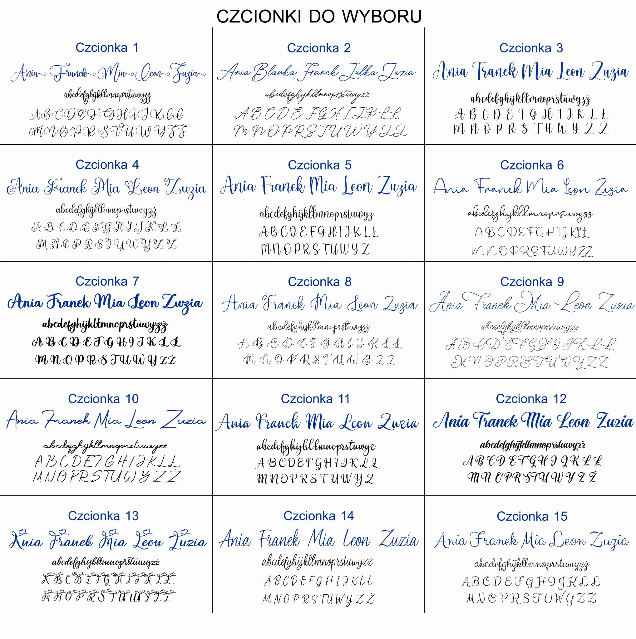 Do wyboru 15 czcionek (na metryczce na zdjęciu jest czcionka 2).