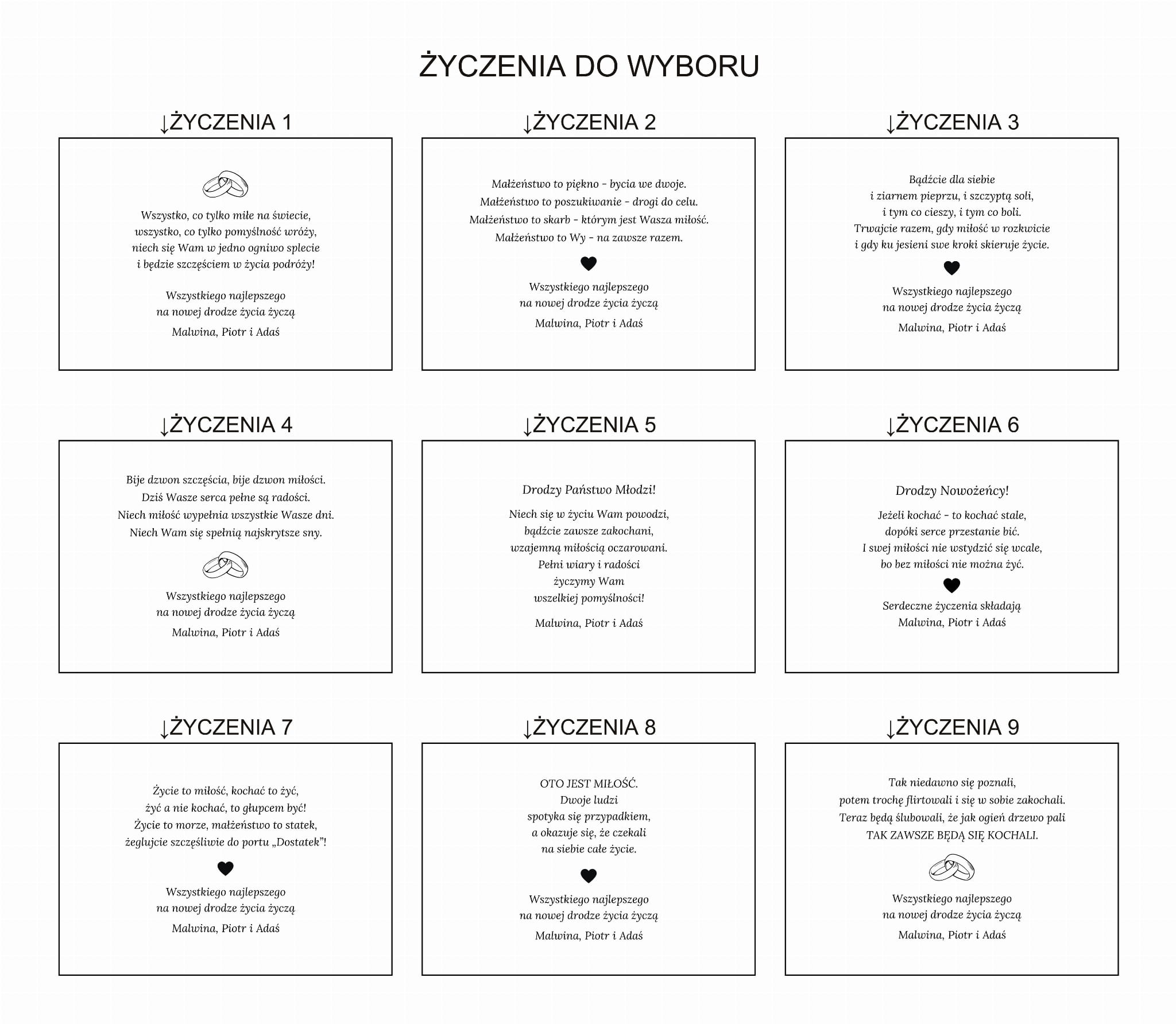 W polu "kto składa życzenia" prosimy pamiętać o interpunkcji i polskich znakach (ą, ę, ł, itd.). Podany tekst zostanie skopiowany i naniesiony bez żadnej modyfikacji.