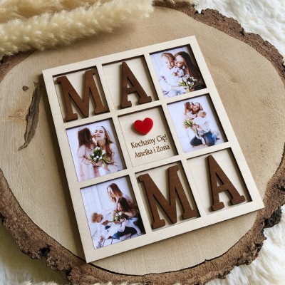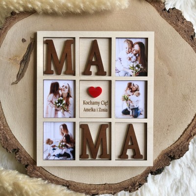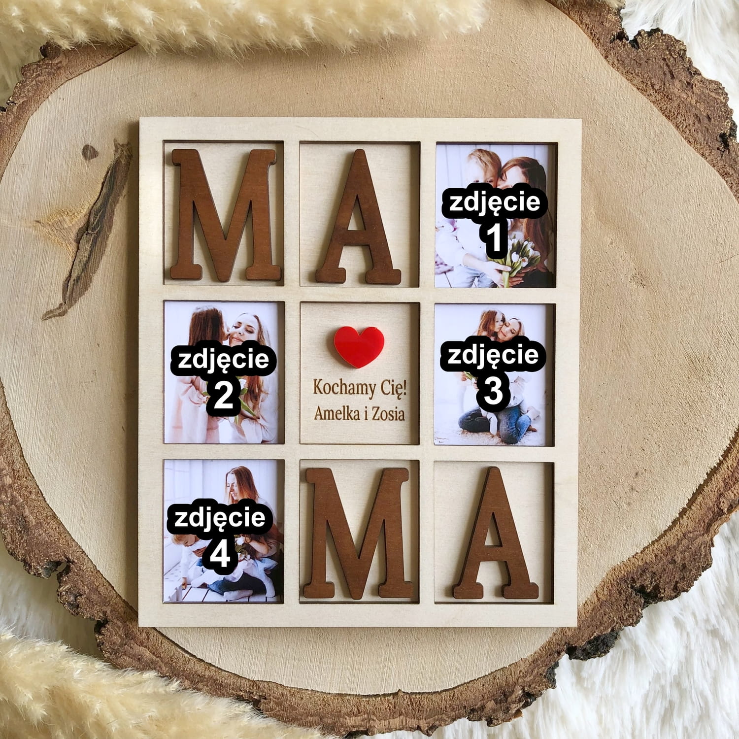Wyjątkowy obrazek MAMA z czteroma zdjęciami i z imionami dzieci.