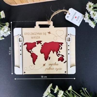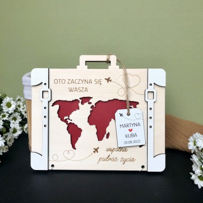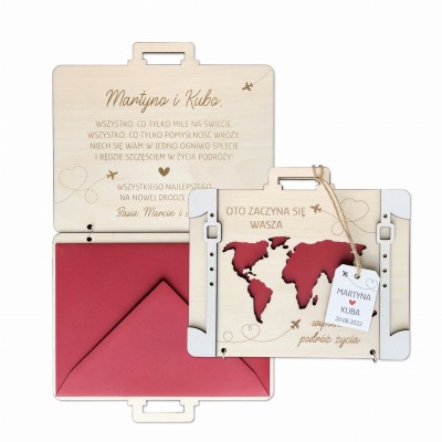 Kartka ślubna w kształcie walizki sprawdzi się idealnie.
