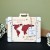 Okładkę kartki ozdabia grawer, wycięta mapa świata oraz białe wypukłe elementy.