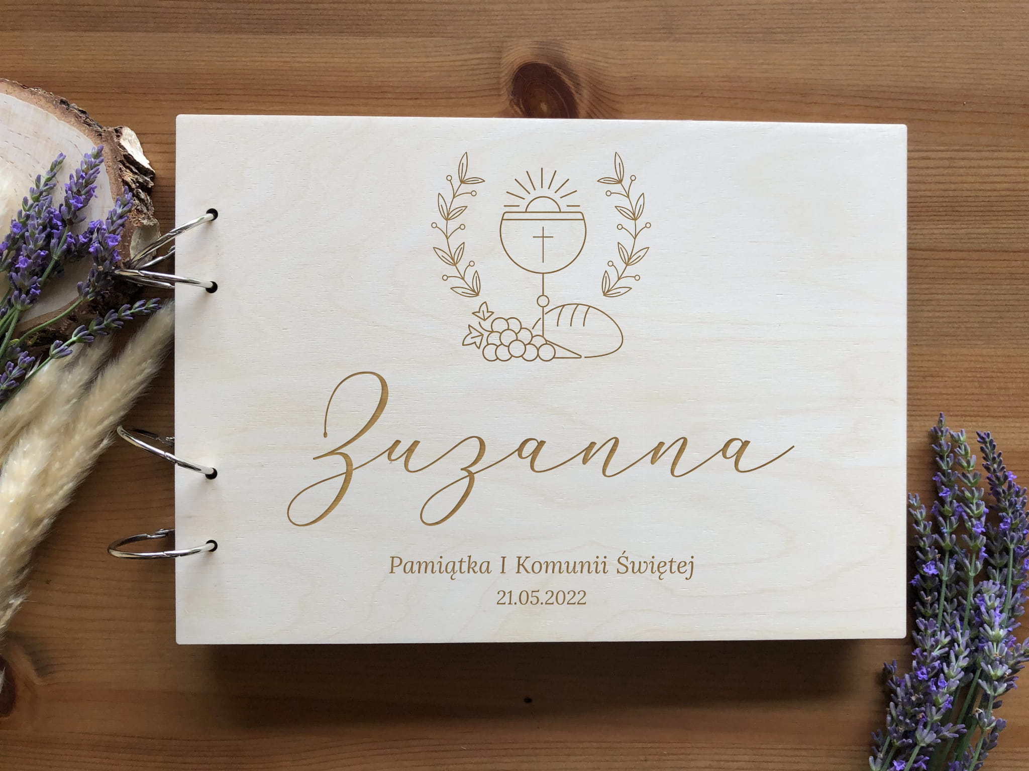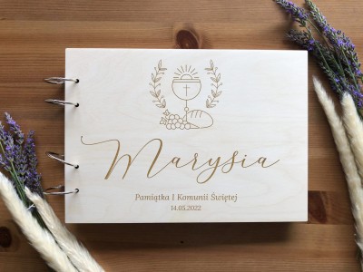 Pamiątka I Komunii Świętej - Album na zdjęcia z drewnianą okładką