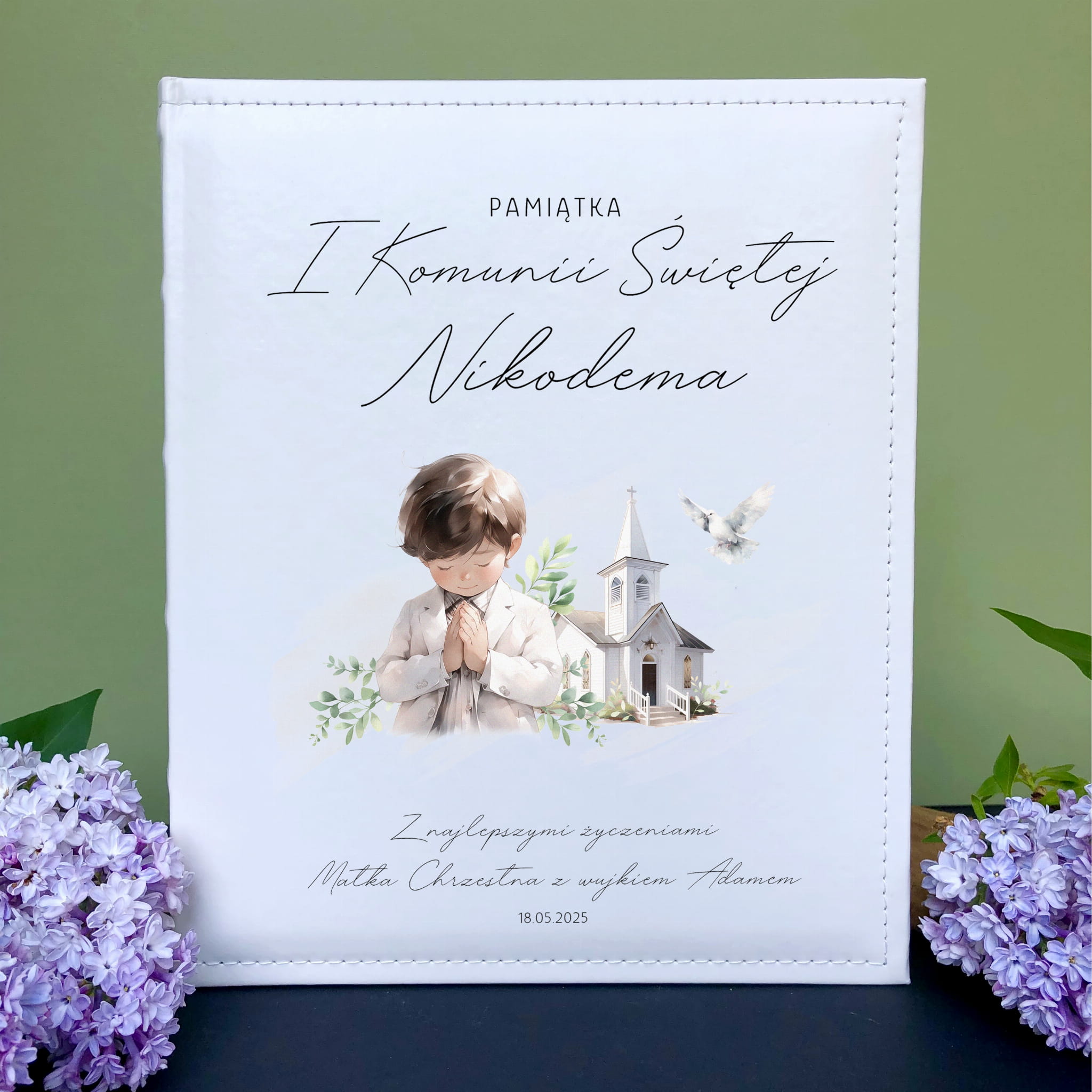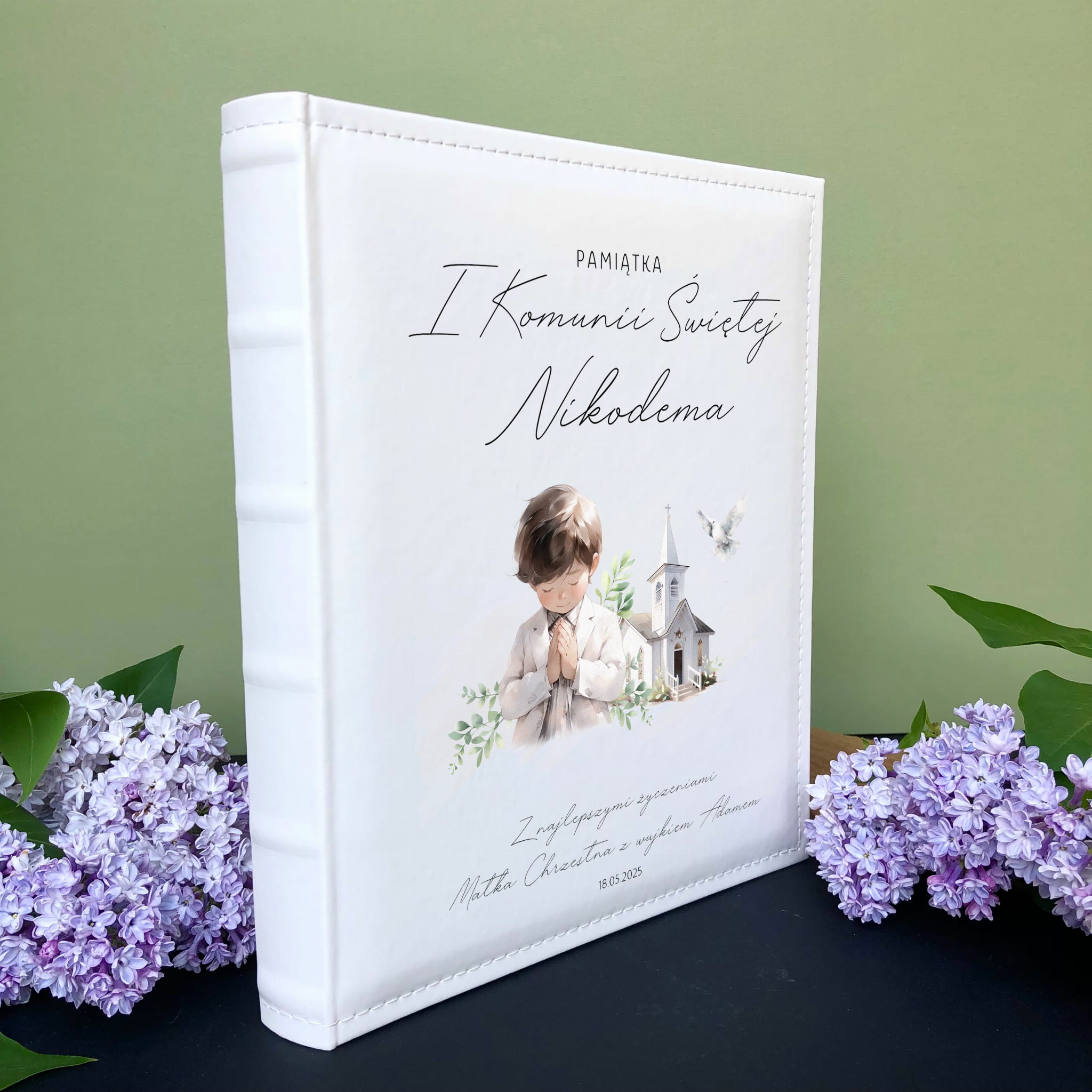 Biały album na zdjęcia z ekoskóry - oryginalny i praktyczny pomysł na prezent z okazji I Komunii Świętej.