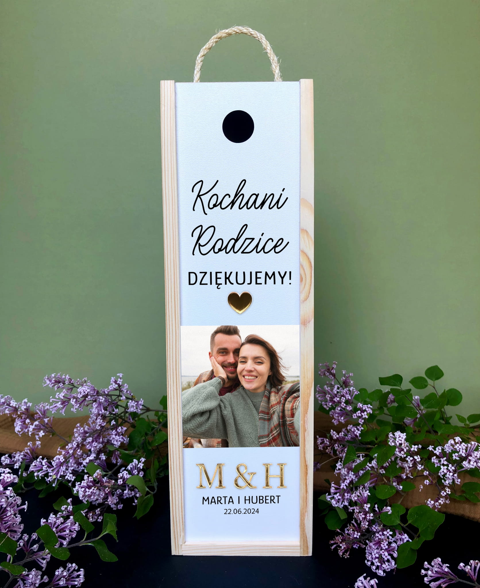 Skrzynka na wino ze spersonalizowanym nadrukiem zaskoczy, sprawi dużo radości i będzie piękną pamiątką na lata.