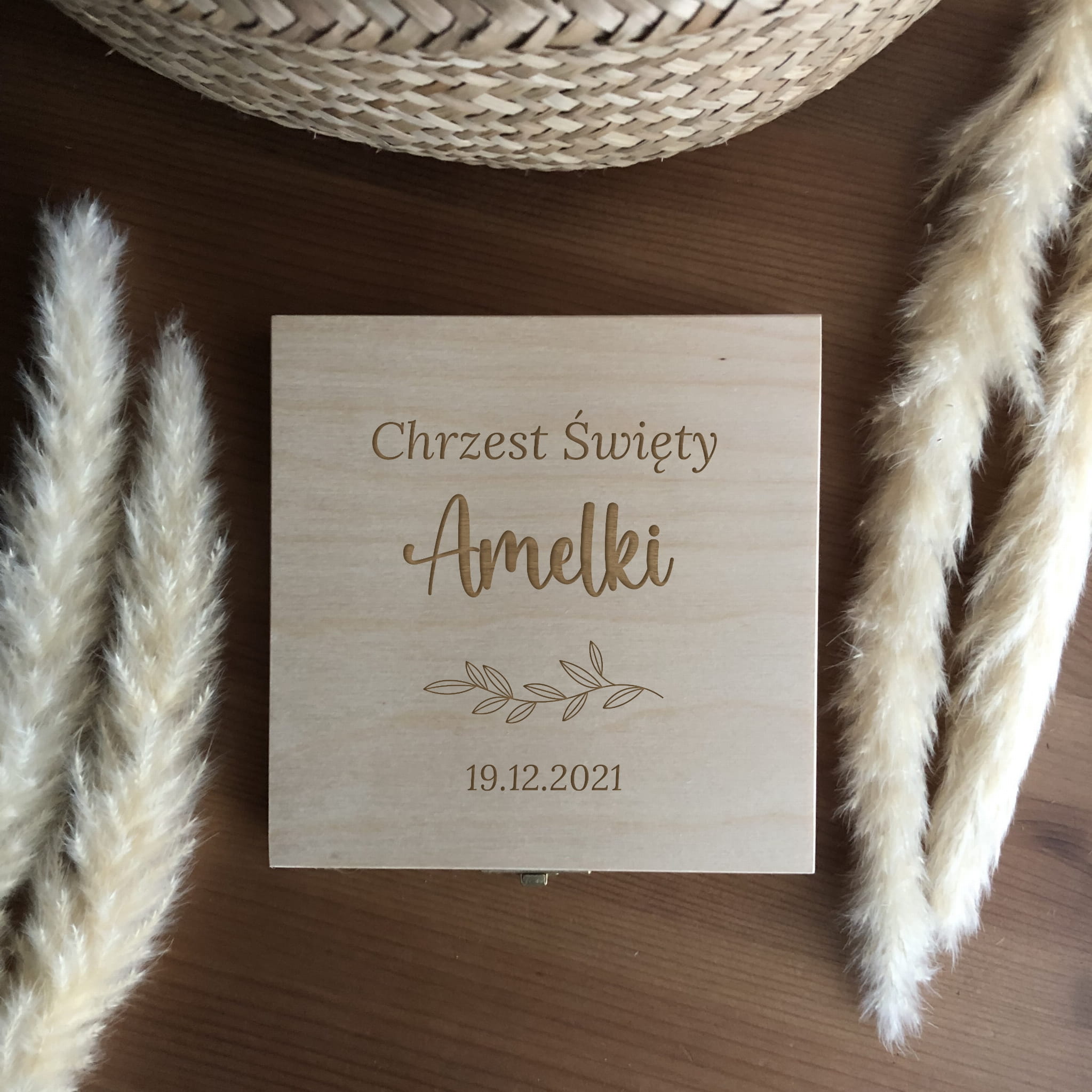 Idealnym wyborem będzie zamykane, sosnowe pudełko z grawerem.