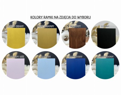 Ramka na zdjęcie może być pomalowana na jeden z 8 kolorów (na zdjęciach jest kolor musztardowy).