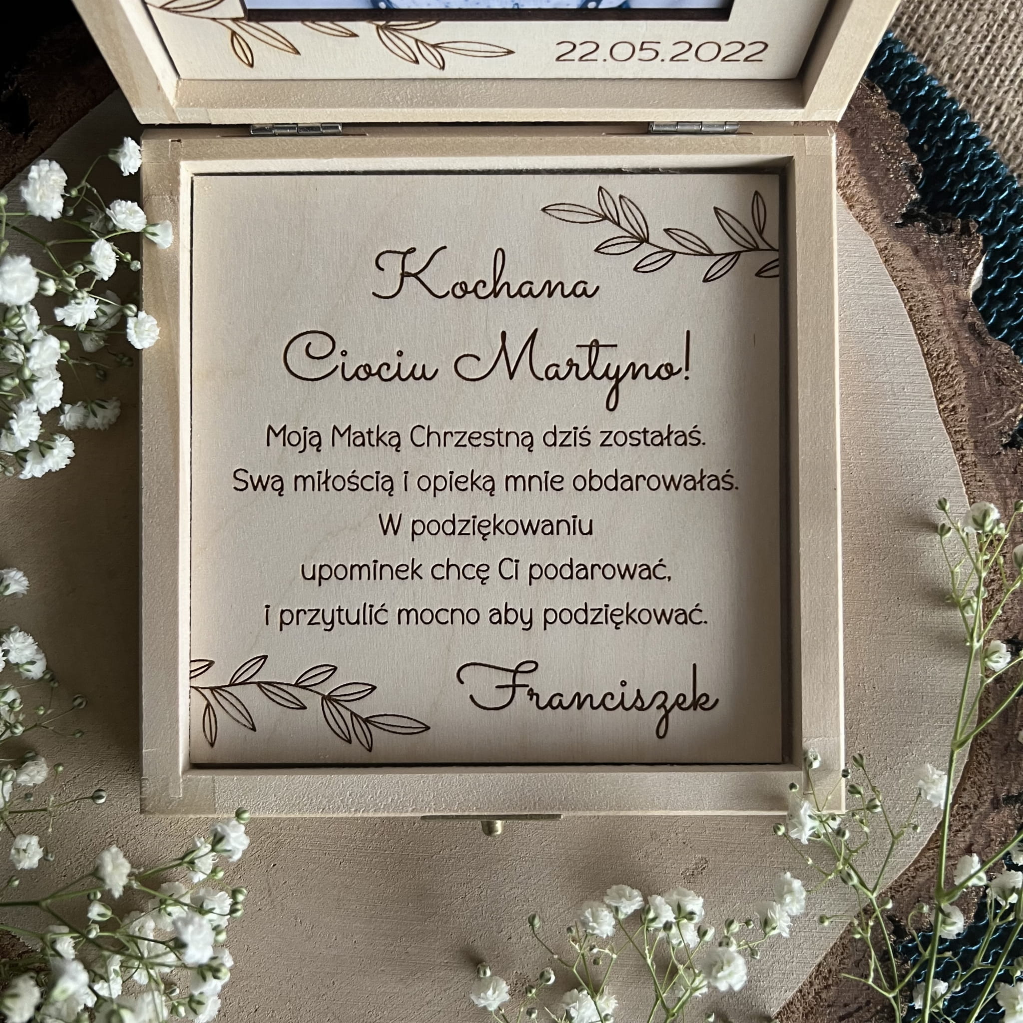 Podziękowanie w drewnianym pudełku.