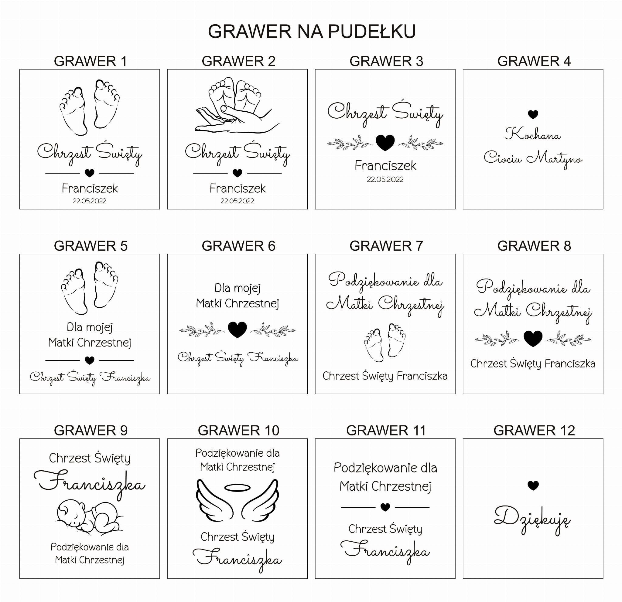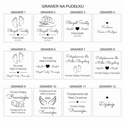 - 12 wzorów grawerów na pudełku