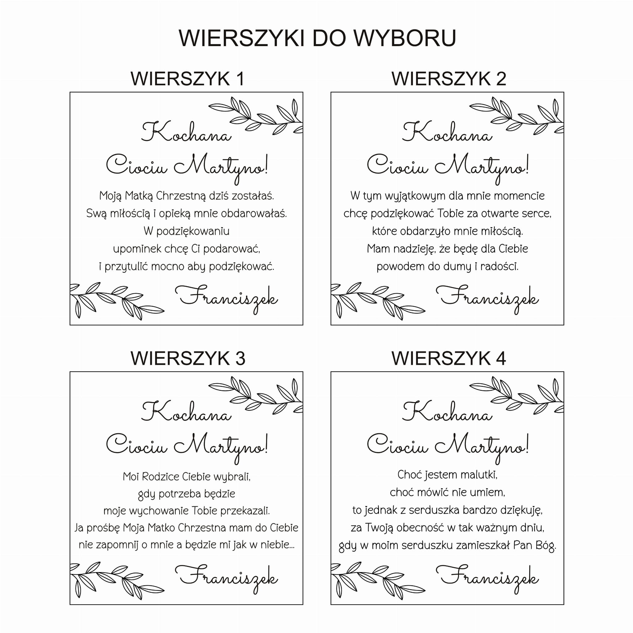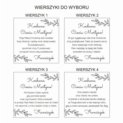 Na dole wygrawerowany jest adresat, wierszyk i imię dziecka.