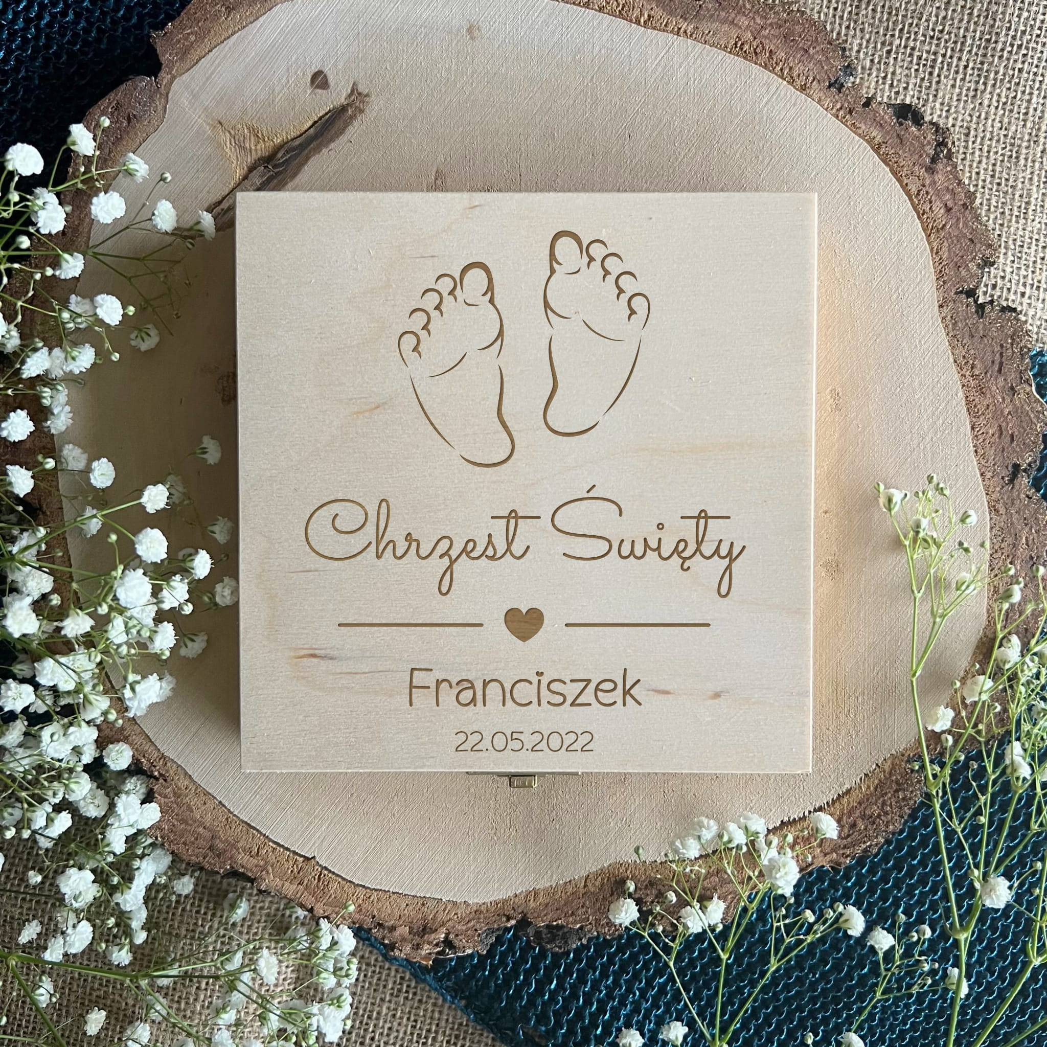 Pudełko ozdobione jest wybranym grawerem.
