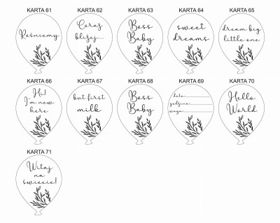 Do wyboru 71 napisów przedstawionych na zdjęciach.