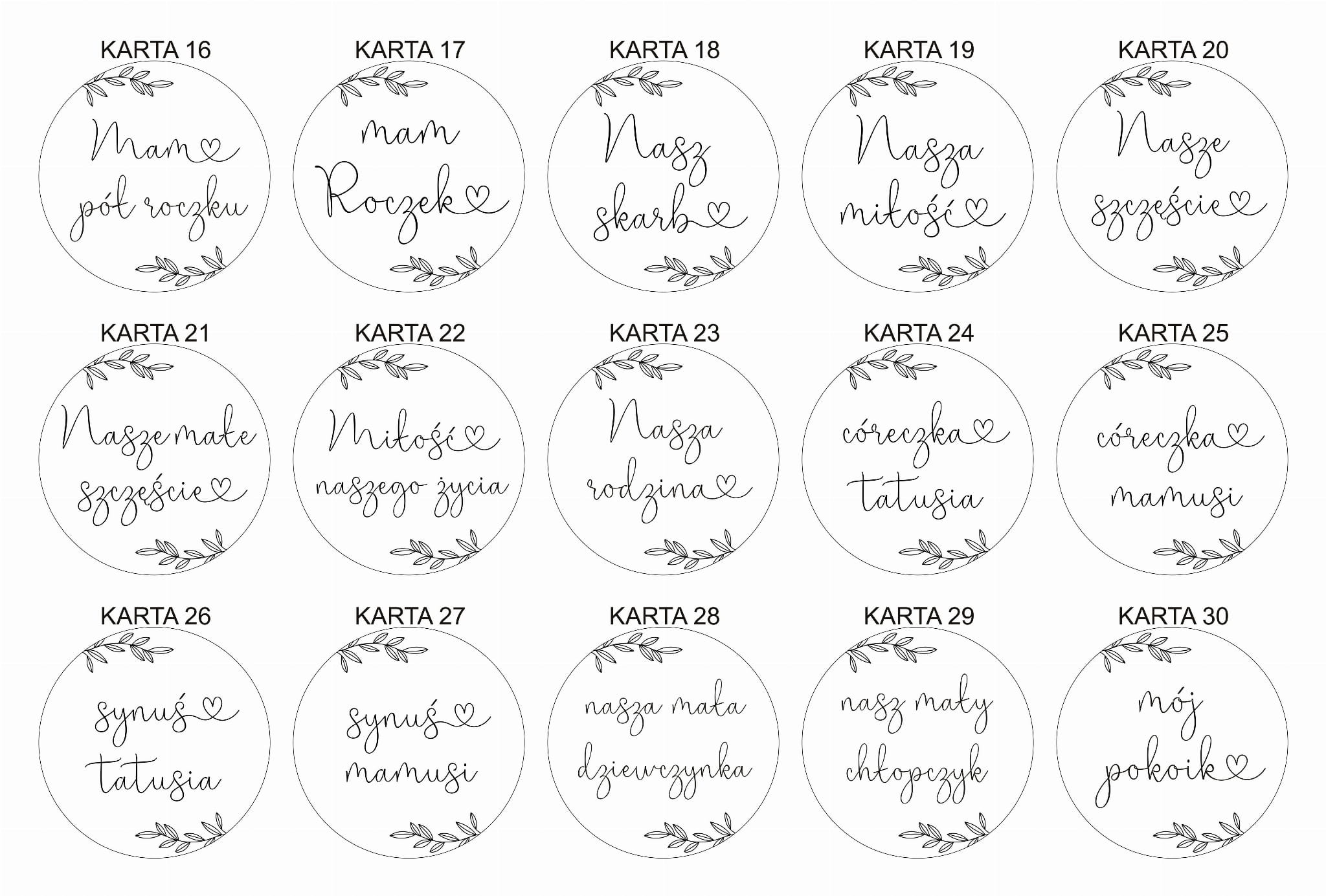 W przypadku karty 01 lub 02 po numerze napisz imię np. 01 - Michał.