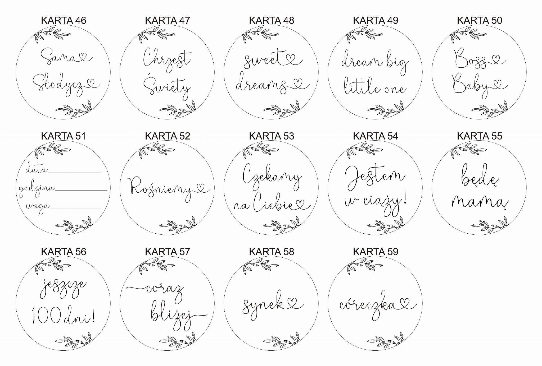 Do wyboru 59 napisów przedstawionych na zdjęciach.