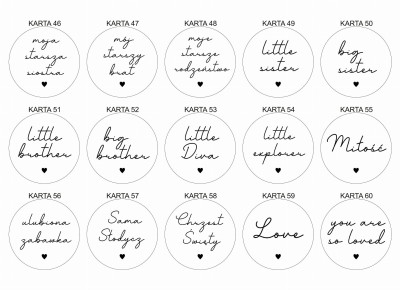 Do wyboru 63 napisy przedstawione na zdjęciach.