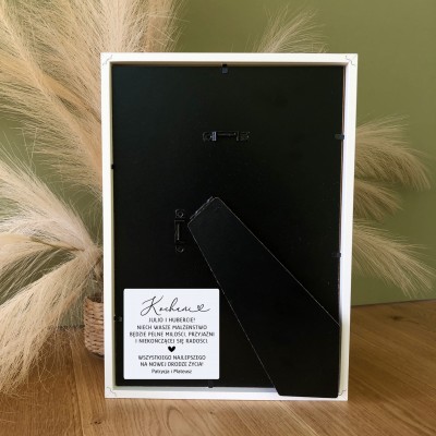 Z tyłu przyklejona jest drewniana tabliczka z życzeniami.