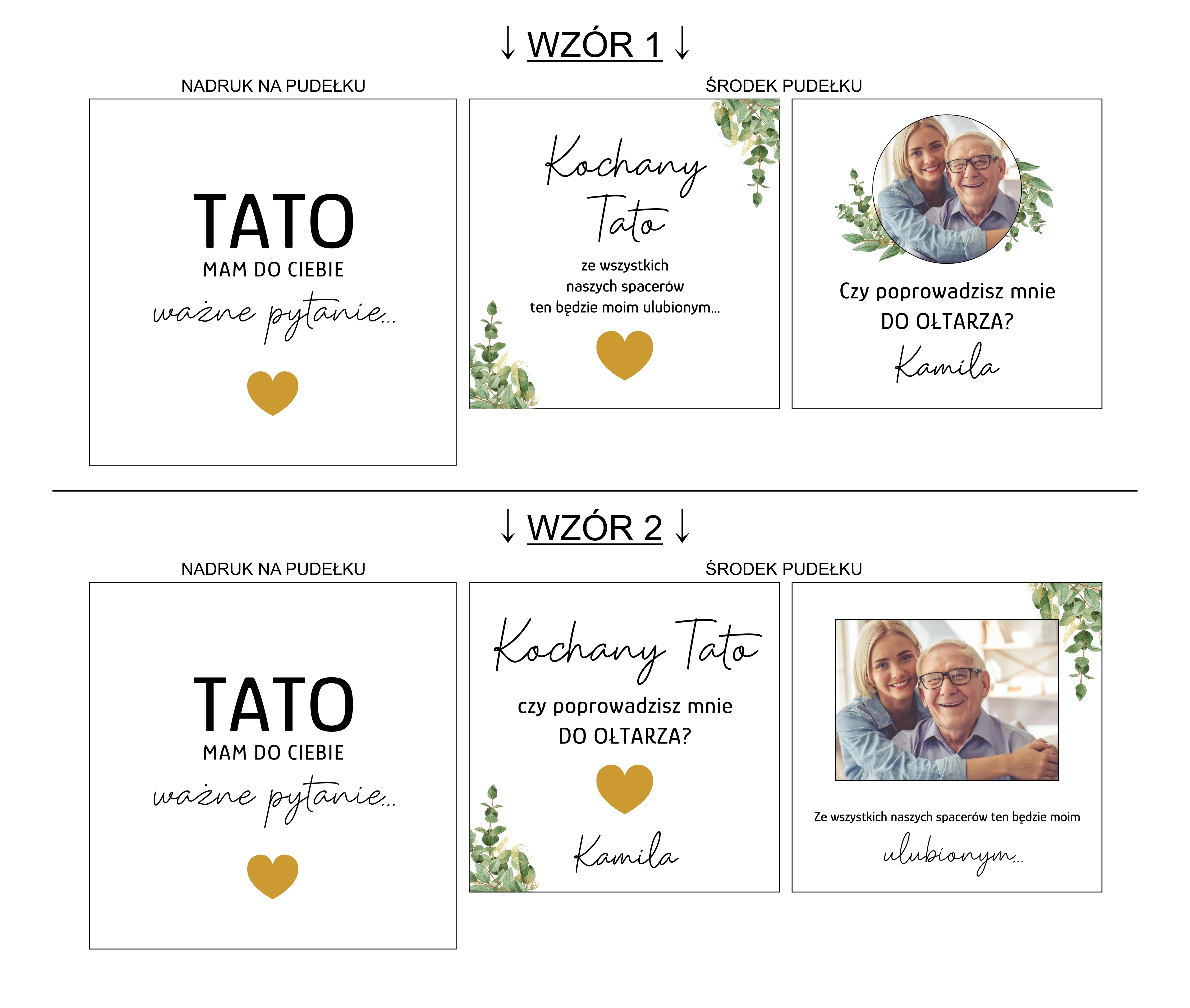 Piękna forma prośby poprowadzenie do ołtarza i wzruszająca pamiątka dla Taty, Mamy, Brata, Dziadka lub Wujka.