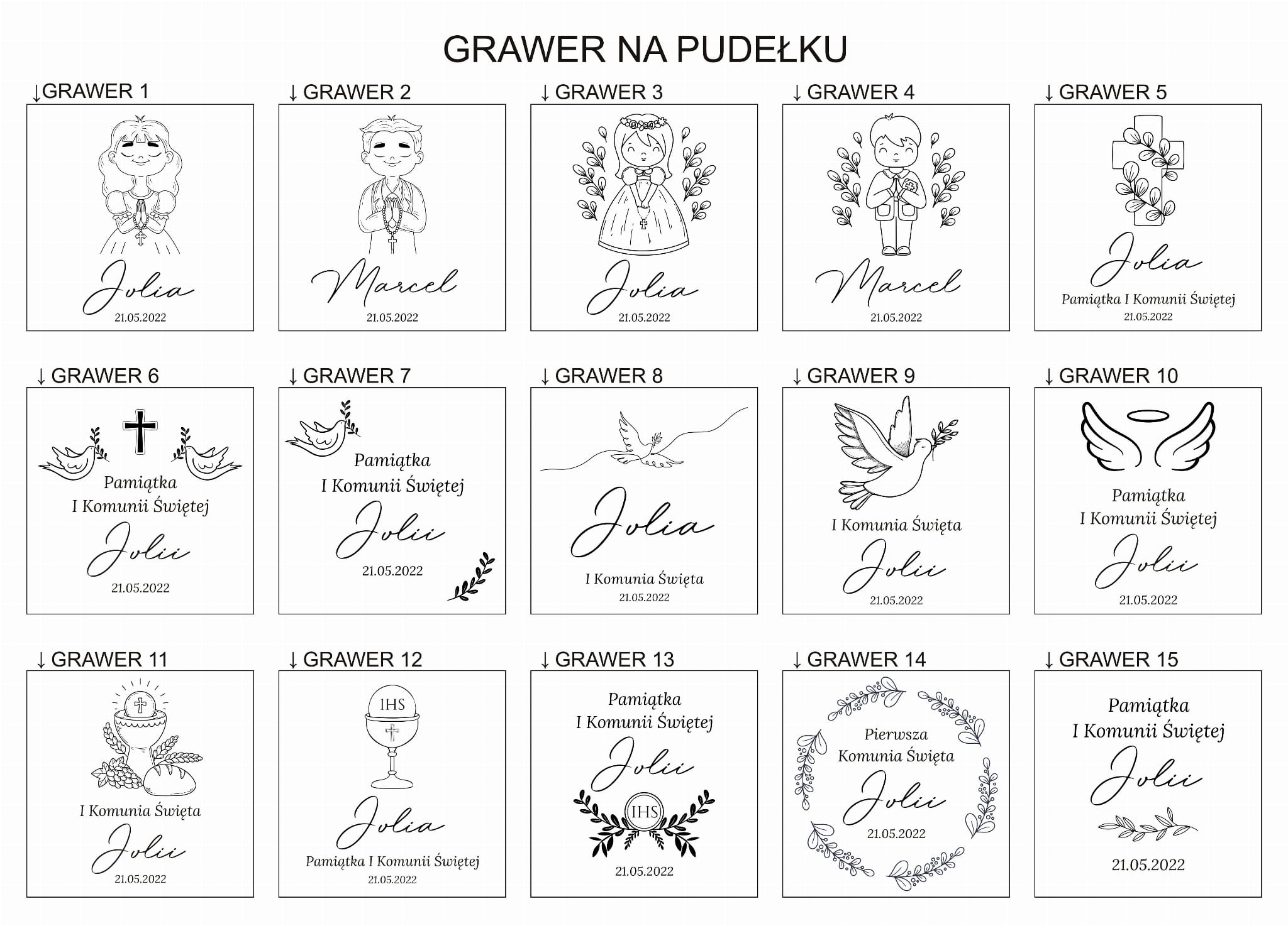 - 12 wzorów grawerów na pudełku