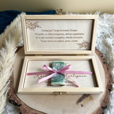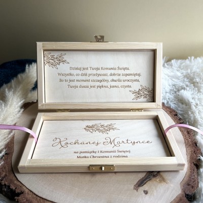 Pudełko z grawerem jest idealnym zastępstwem standardowej koperty, dodatkowo będzie wspaniałą pamiątką na wiele lat.