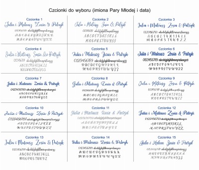 • 15 czcionek (imiona Pary Młodej i data ślubu)