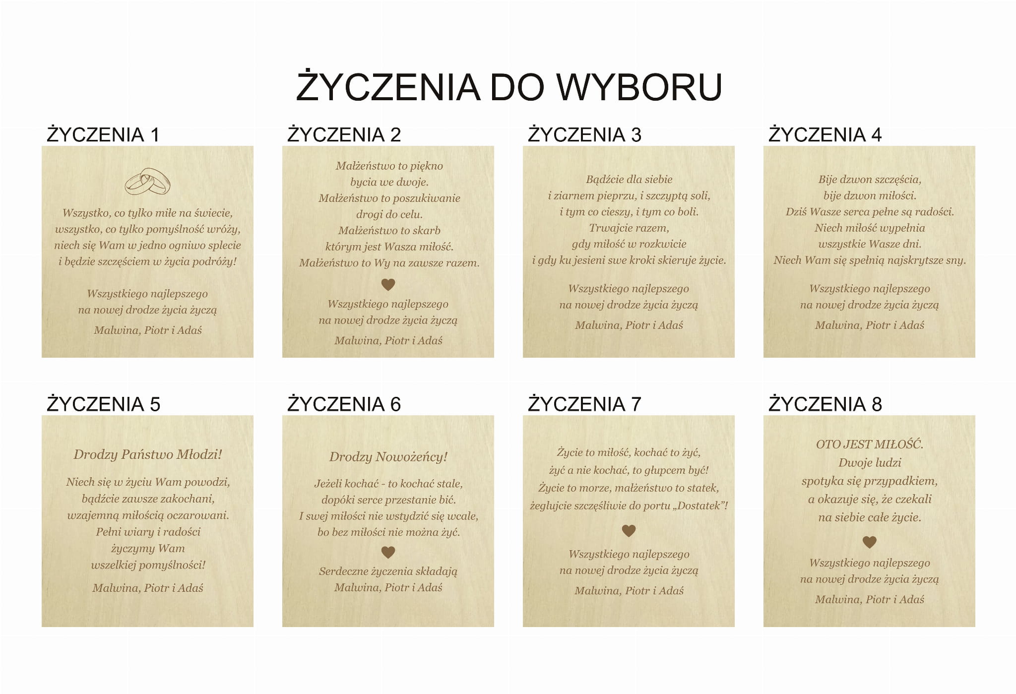 - wygrawerowane życzenia