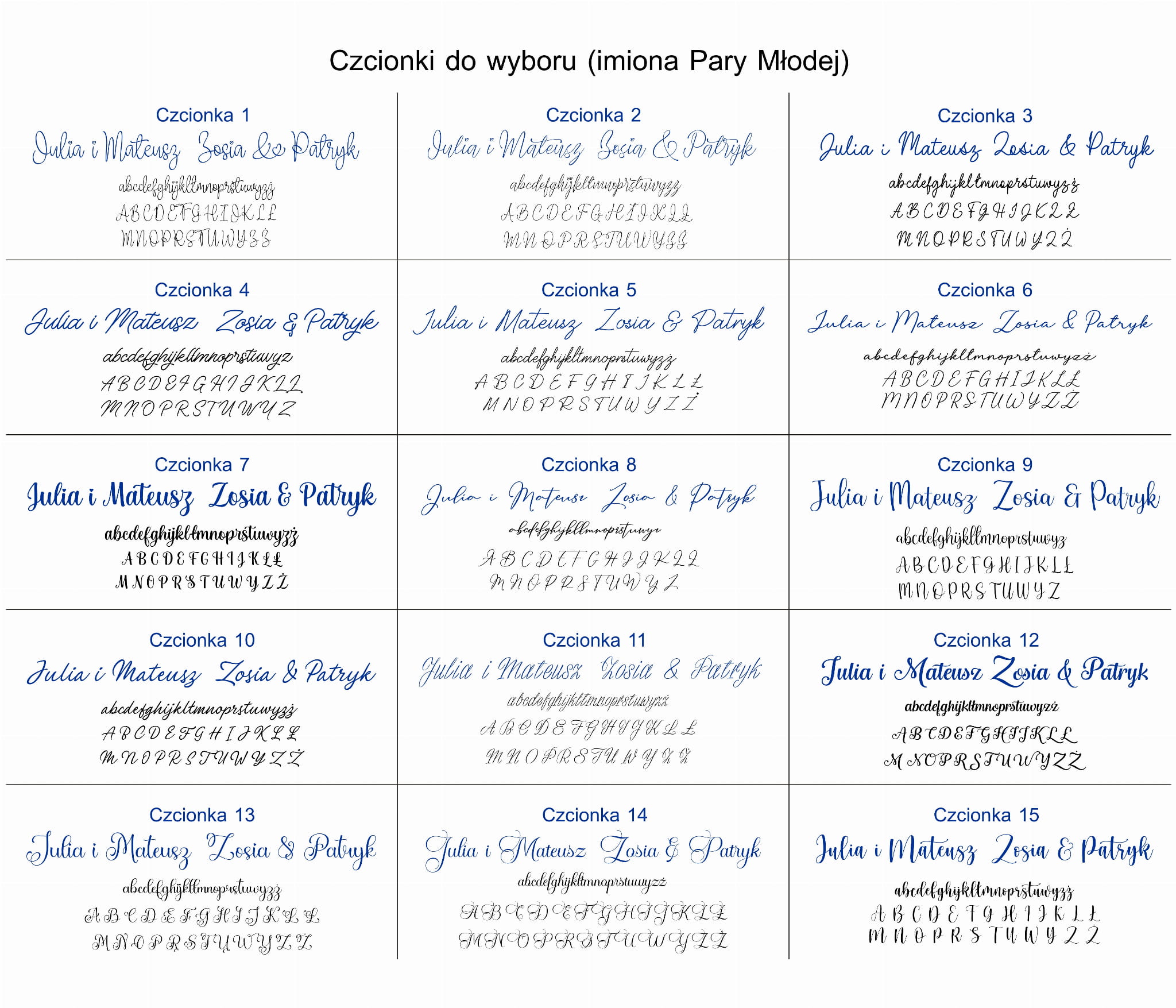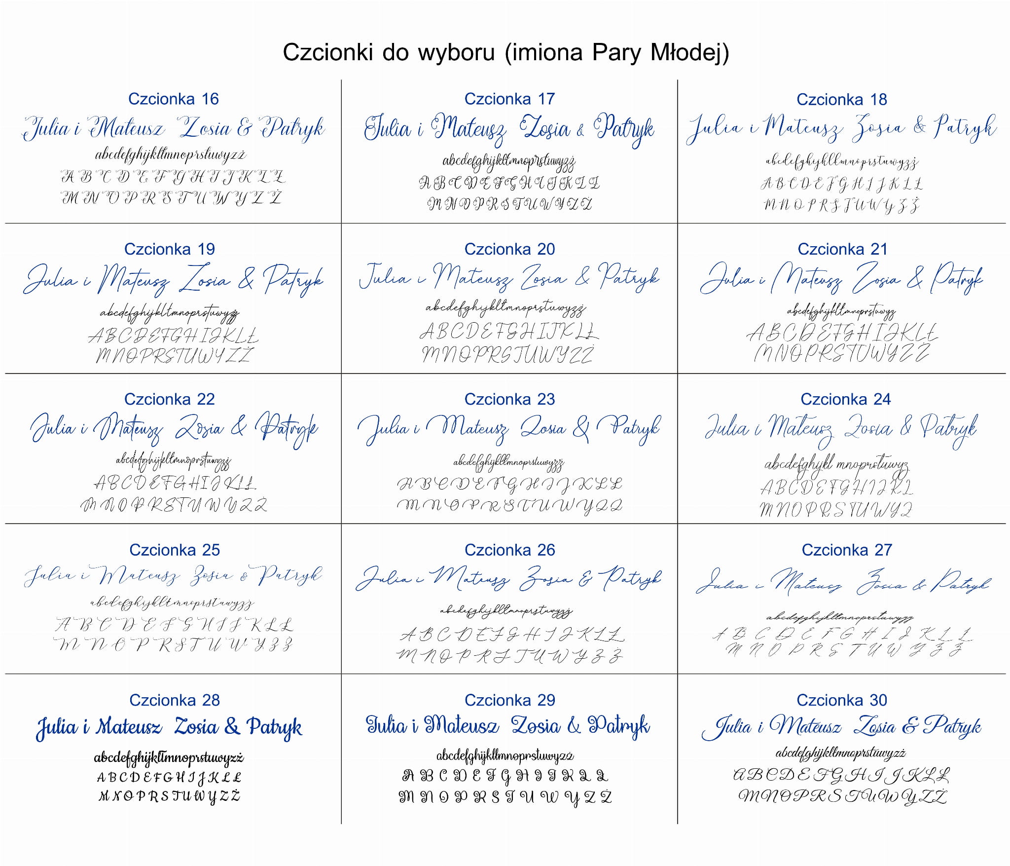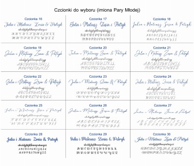 - 30 czcionek (imiona Pary Młodej)