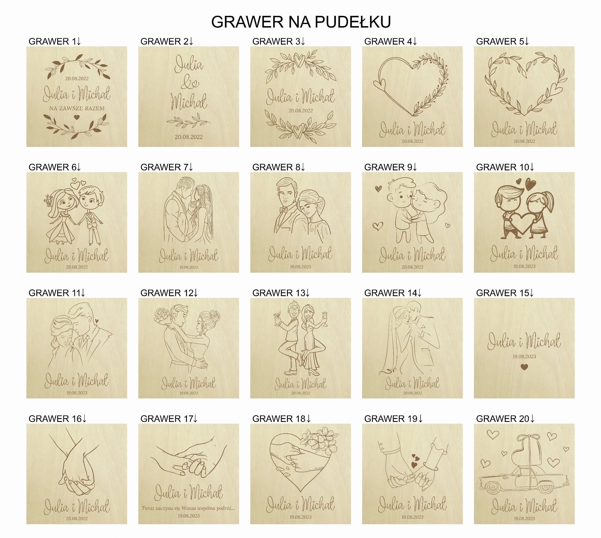 - 20 wzorów grawerów na pudełku