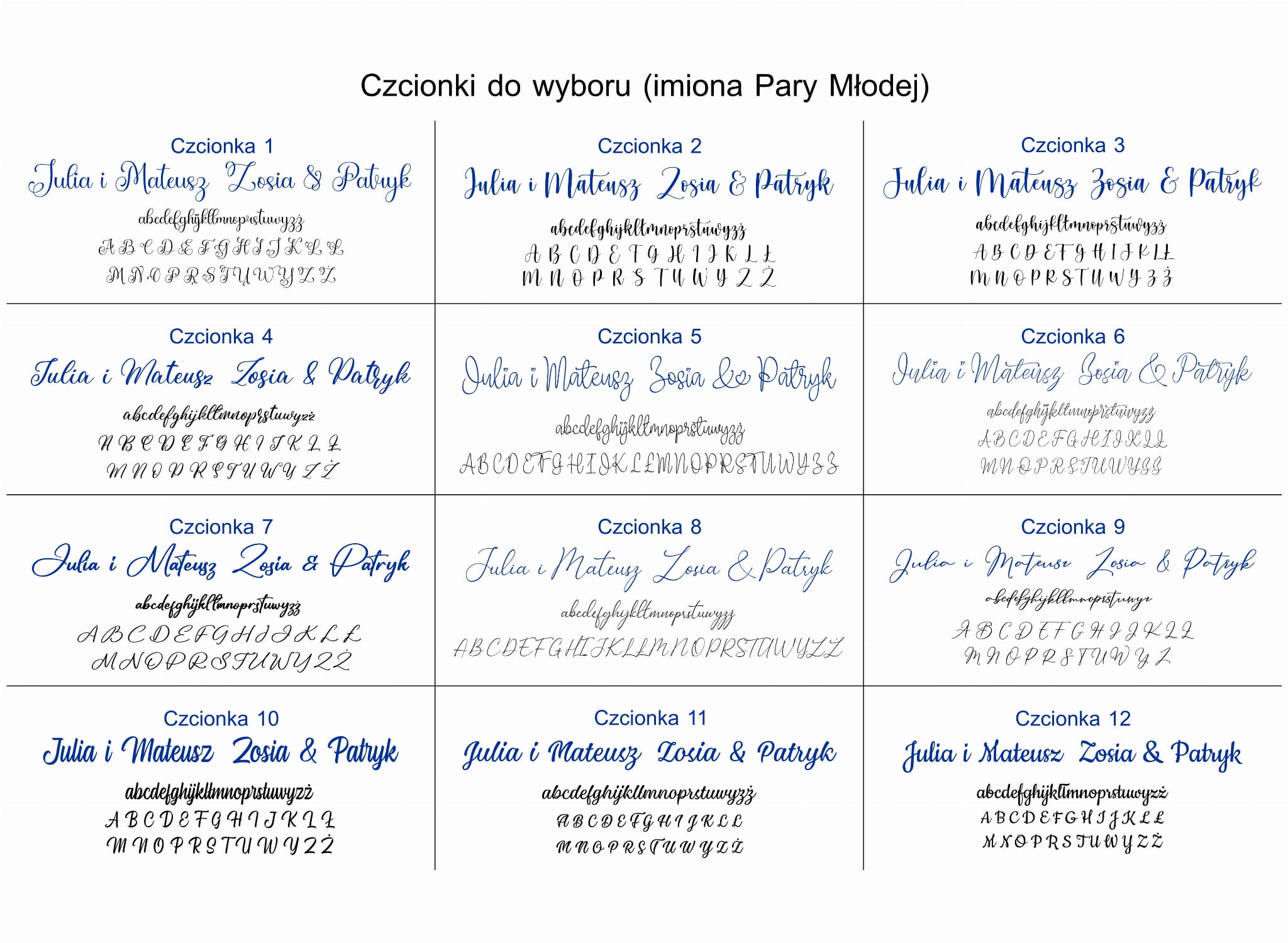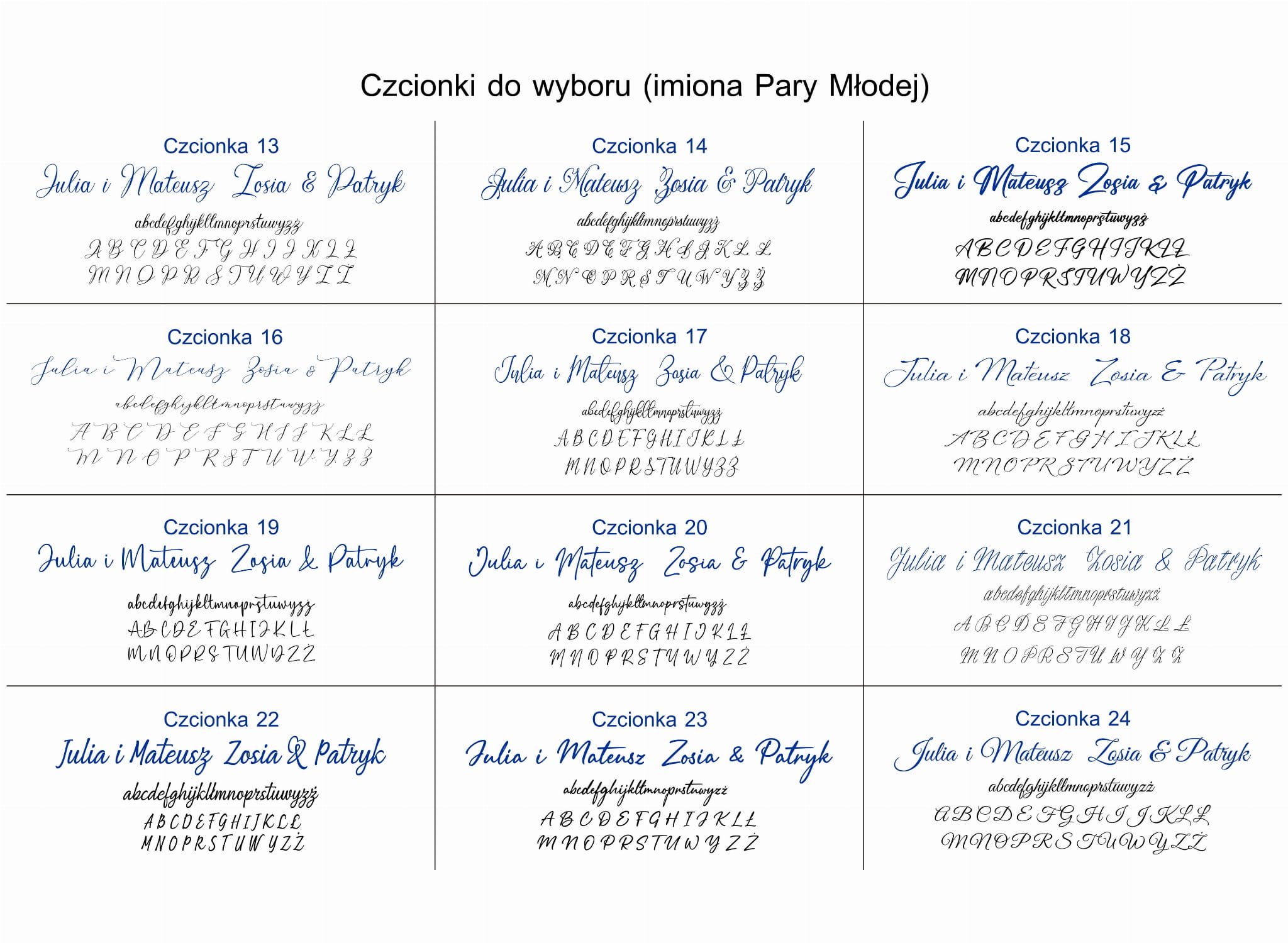 - 24 czcionki (imiona Pary Młodej)