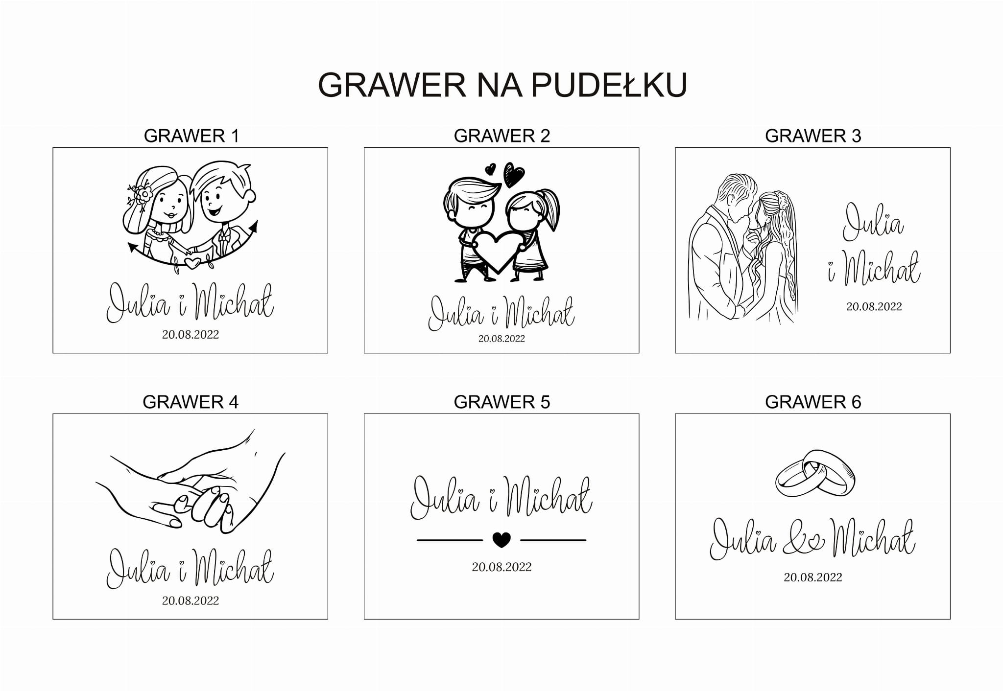 - 6 wzorów grawerów na pudełku